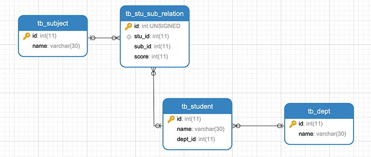 多对多N条记录查询由于使用了批查询,因此最多访问数据库也是3次,先查询学生信息,然后查询学生与课程匹配信息,最后查询课程分数信息,查询时间复杂度为O(1)。