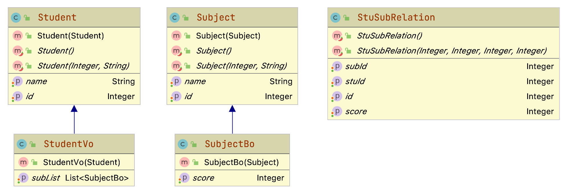 public List<StudentVo> getStudentList() { // 通过主键查询学生信息 List<StudentVo> studentVoList = ConvertUtils.convertList(list(), StudentVo::new); // 批量查询学生ID Set<Integer> stuIds = studentVoList.stream().map(Student::getId).collect(toSet()); LambdaQueryWrapper<StuSubRelation> wrapper = Wrappers.lambdaQuery(StuSubRelation.class).in(StuSubRelation::getStuId, stuIds); List<StuSubRelation> stuSubRelations = stuSubRelationMapper.selectList(wrapper); // 批量查询课程ID Set<Integer> subIds = stuSubRelations.stream().map(StuSubRelation::getSubId).collect(toSet()); if (stuIds.size() > 0 && subIds.size() > 0) { HashBasedTable<Integer, Integer, Integer> table = getHashBasedTable(stuSubRelations); List<Subject> subList = subjectMapper.selectList(Wrappers.lambdaQuery(Subject.class).in(Subject::getId, subIds)); List<SubjectBo> subjectBoList = ConvertUtils.convertList(subList, SubjectBo::new); Map<Integer, List<Integer>> map = stuSubRelations.stream().collect(groupingBy(StuSubRelation::getStuId, mapping(StuSubRelation::getSubId, toList()))); for (StudentVo studentVo : studentVoList) { // 获取课程列表 List<SubjectBo> list = ListUtils.select(subjectBoList, e -> emptyIfNull(map.get(studentVo.getId())).contains(e.getId())); // 填充分数 list.forEach(e -> e.setScore(table.get(studentVo.getId(), e.getId()))); studentVo.setSubList(list); } } return studentVoList; }