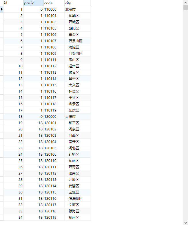 行政区划代码(使用国务院官方数据)形成树形结构数据表