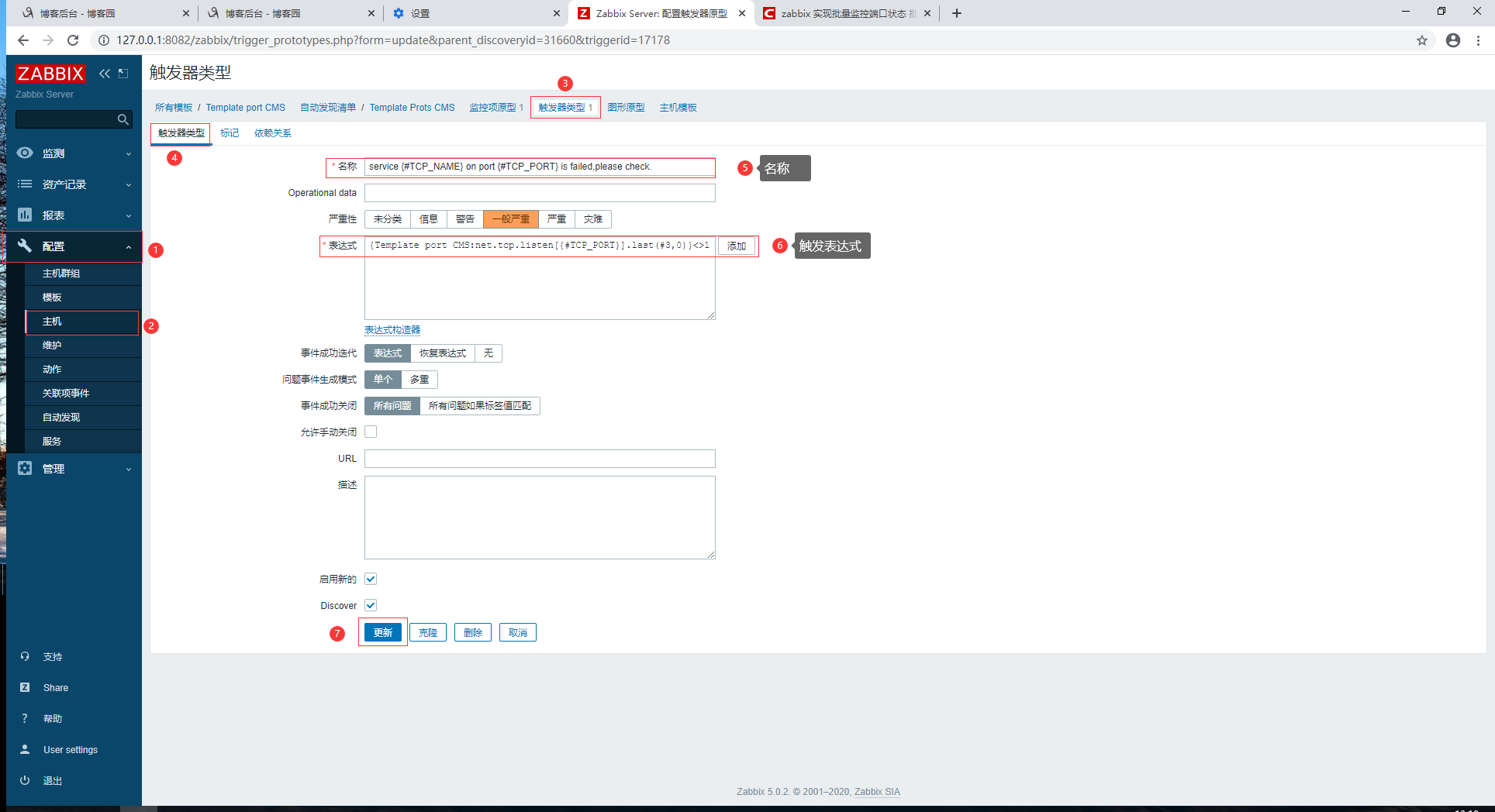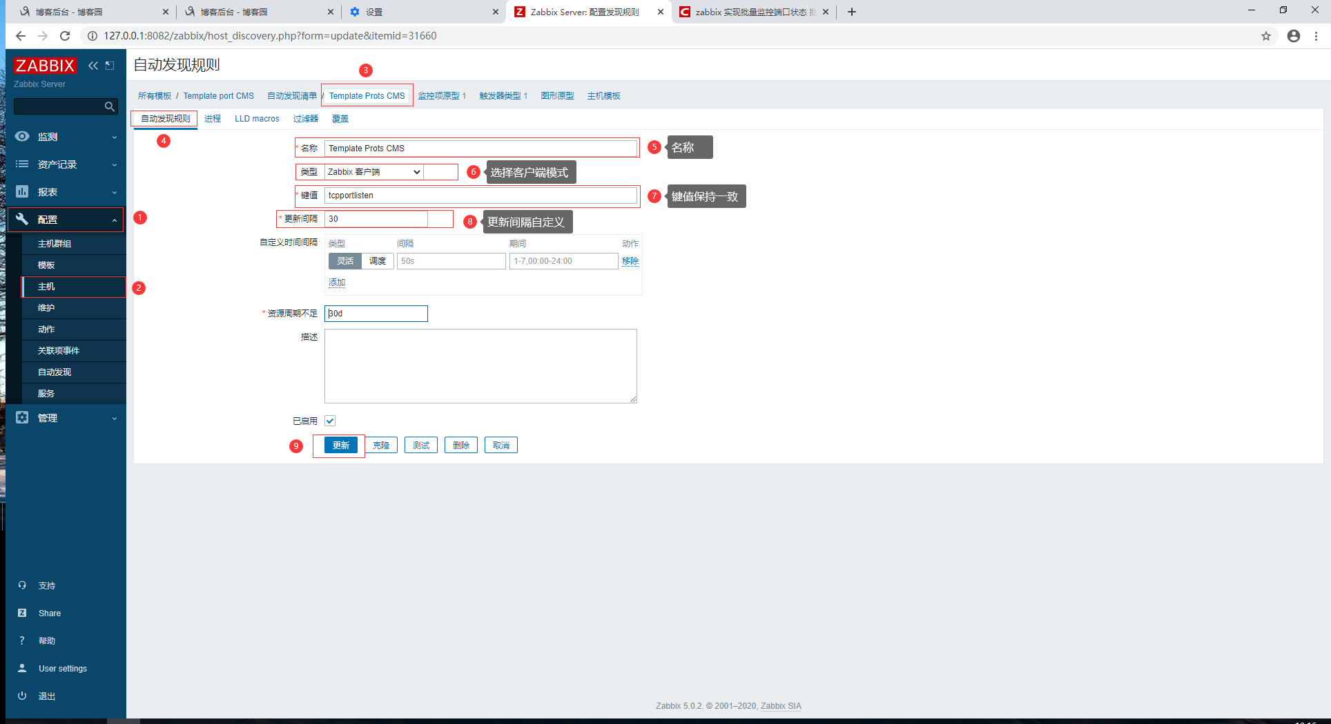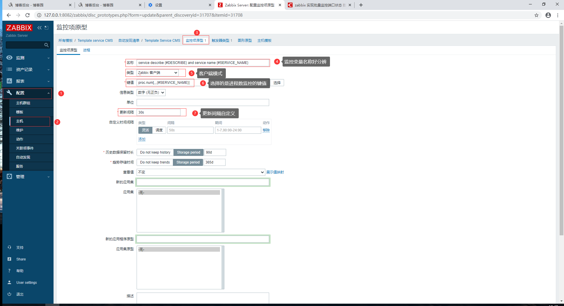 创建自动发现规则后,点击该规则下的 “监控项原型” ----> 创建监控项原型