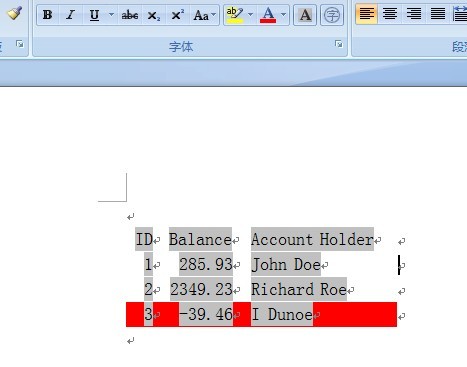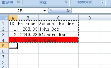 //如果Balance<0,这行数据用红色的显示