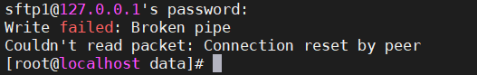 重新登陆成功。但是这里还是有一个坑。由于之前我们给/data/sftp/sftp1设置的权限是755,所以不能写入文件。