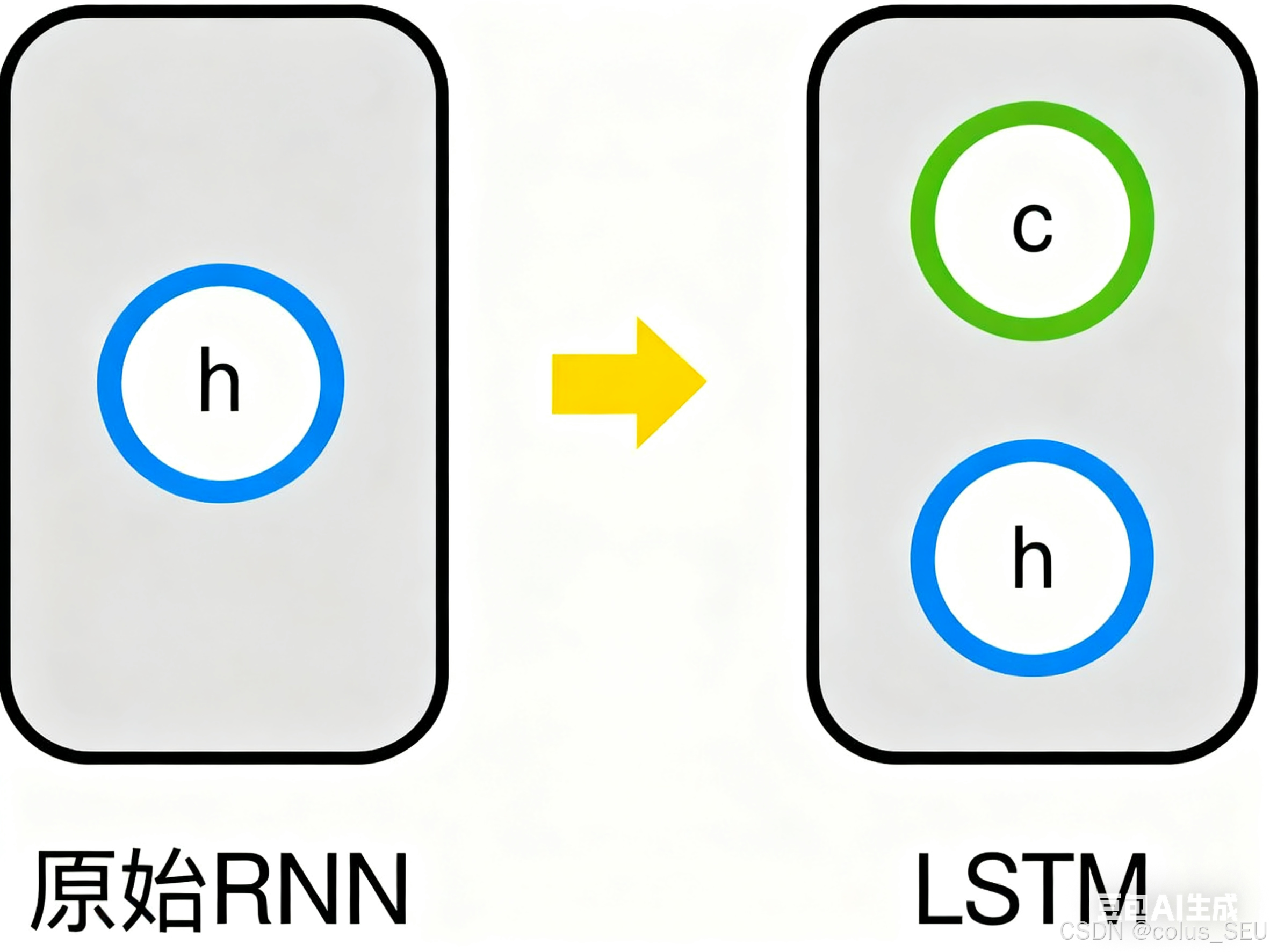 其实,长短时记忆网络的思路比较简单。原始RNN的隐藏层只有一个状态,即,它对于短期的输入相当敏感。那么,假如我们再增加一个状态,即