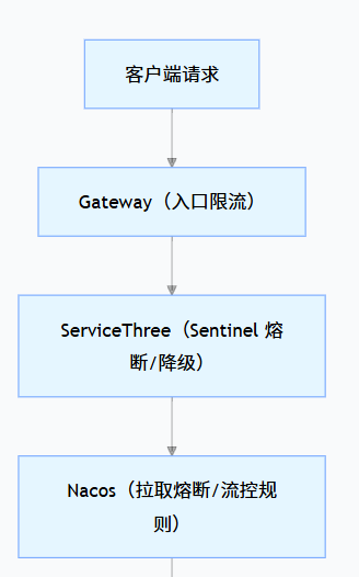 | 重启后规则没加载,控制台看不到 | 1. 检查 Nacos 配置是否发布;2. 查看 ServiceThree 控制台日志,是否有 “load rules from Nacos” 成功日志;3. 确认依赖 sentinel-datasource-nacos 已引入 |