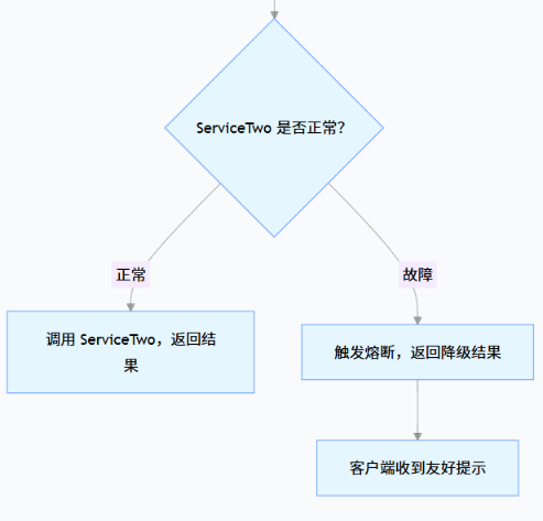 | 熔断 | 像家里的 “保险丝”—— 当电流过大(服务故障),保险丝自动断开,避免电路烧毁 | 暂时 “切断” 对故障服务的调用,防止故障扩散 | 餐厅某道菜的食材用完了,服务员直接告诉顾客 “这道菜暂时没有”,不往后厨下单 |