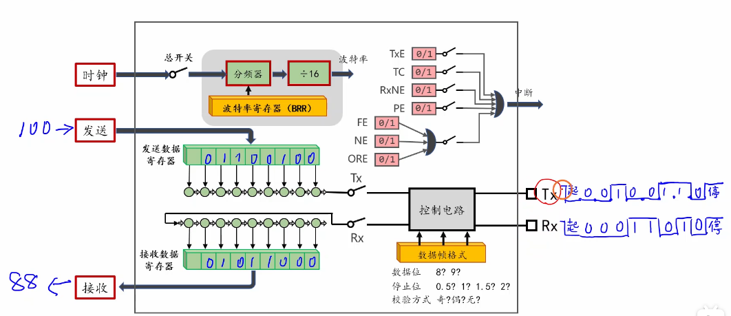 · 接收数据寄存器(RDR):读取接收到的数据
