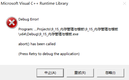 如果不断往堆里开辟新的空间存储ptr,最后运行到进程崩溃,如下所示。