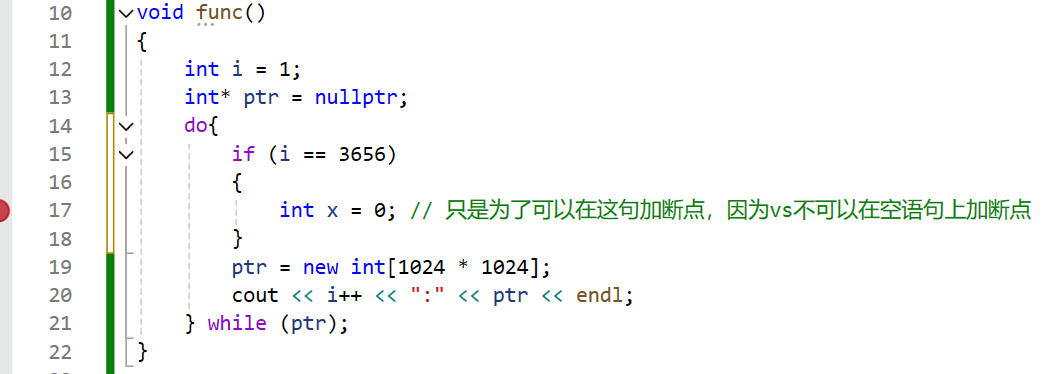 int x = 0; // 只是为了可以在这句加断点,因为vs不可以在空语句上加断点
