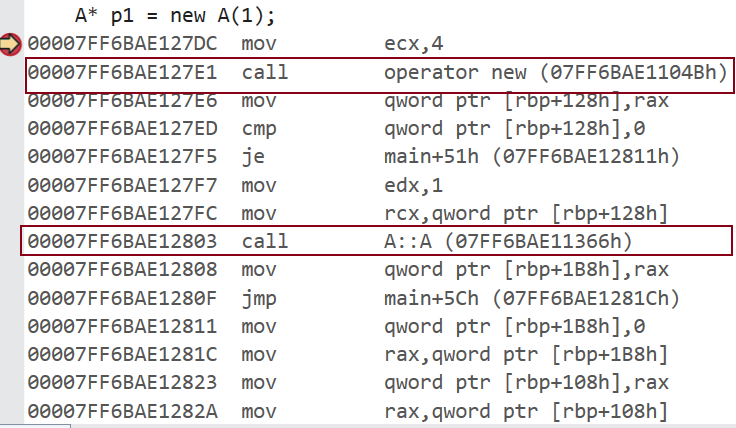 // p现在指向的只不过是与A对象相同大小的一段空间,还不能算是一个对象,因为构造函数没有执行