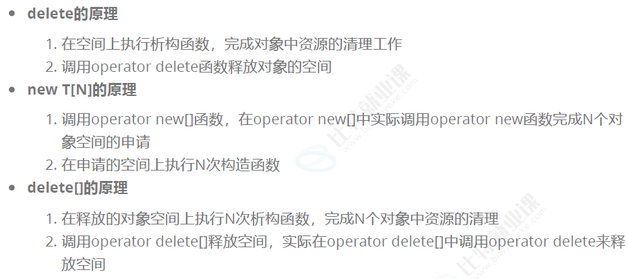 new先调operator new,再调构造函数;delete先调析构函数,再调operator delete