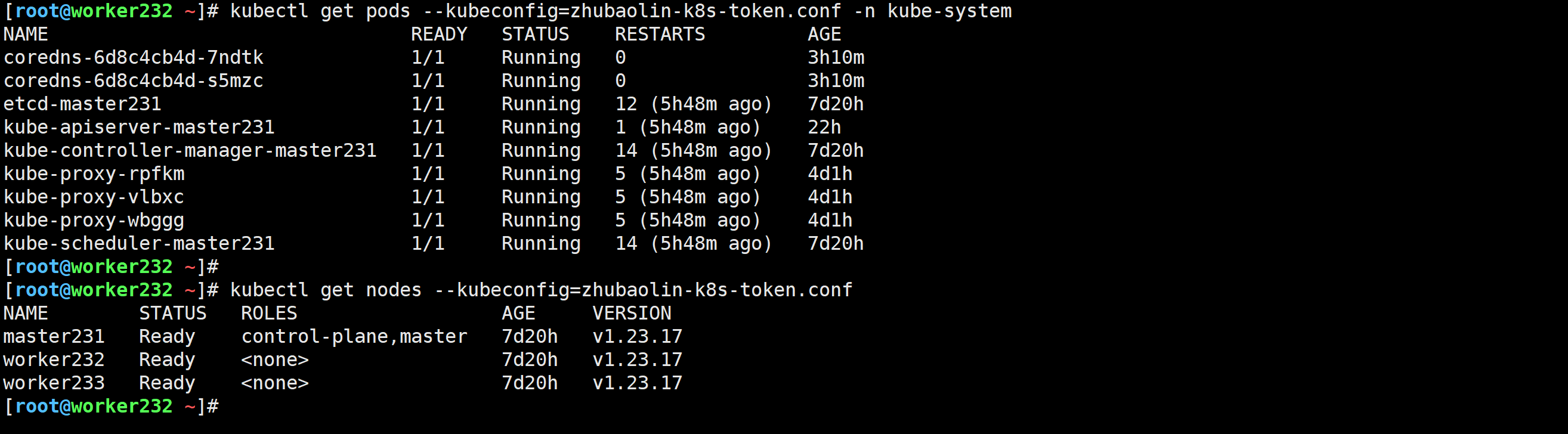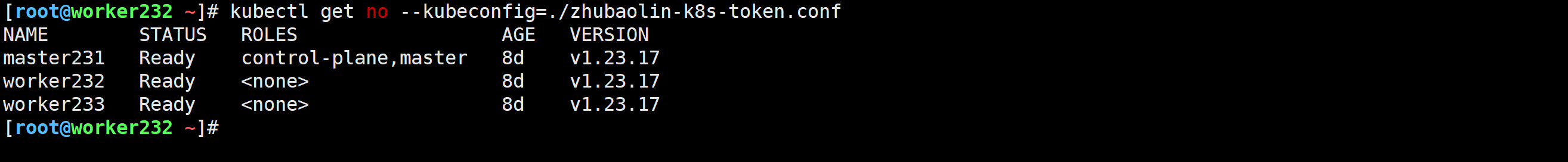 worker232 Ready <none> 9d v1.23.17 10.0.0.232 <none> Ubuntu 22.04.4 LTS 5.15.0-156-generic docker://20.10.24