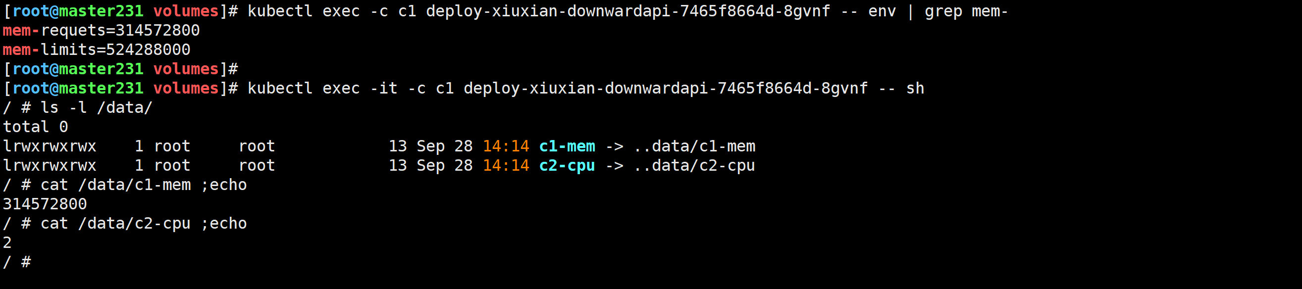 [root@master231 volumes]# kubectl exec -c c1 deploy-xiuxian-downwardapi-7465f8664d-8gvnf -- env | grep mem-