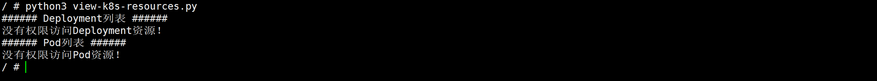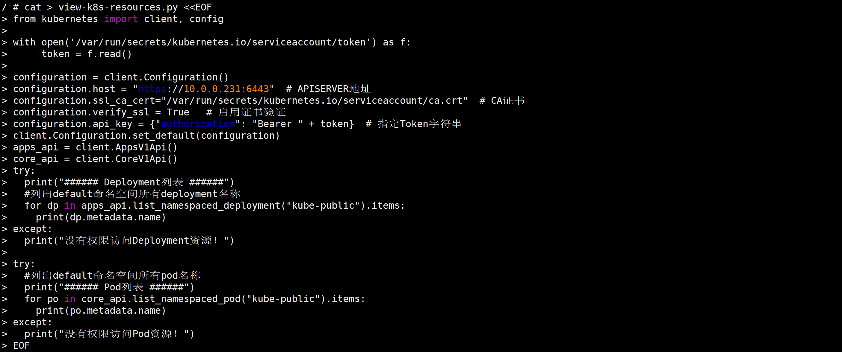 / # TOKEN=`cat /var/run/secrets/kubernetes.io/serviceaccount/token`