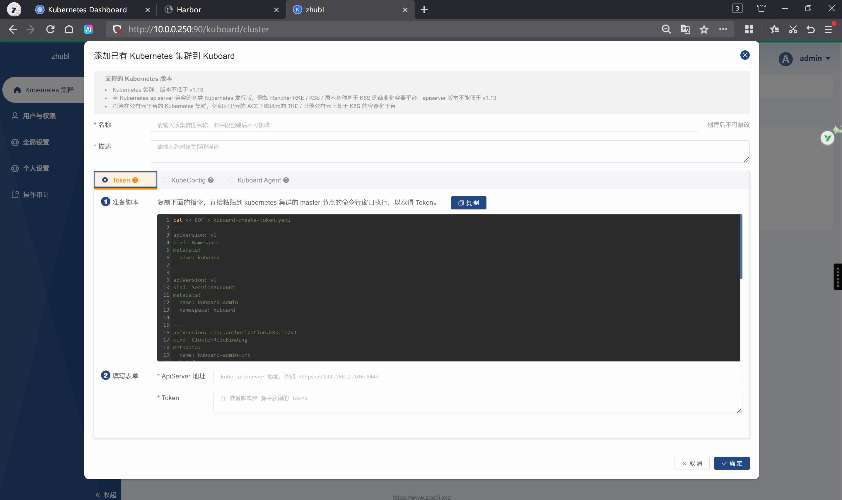 基于token的方式添加集群