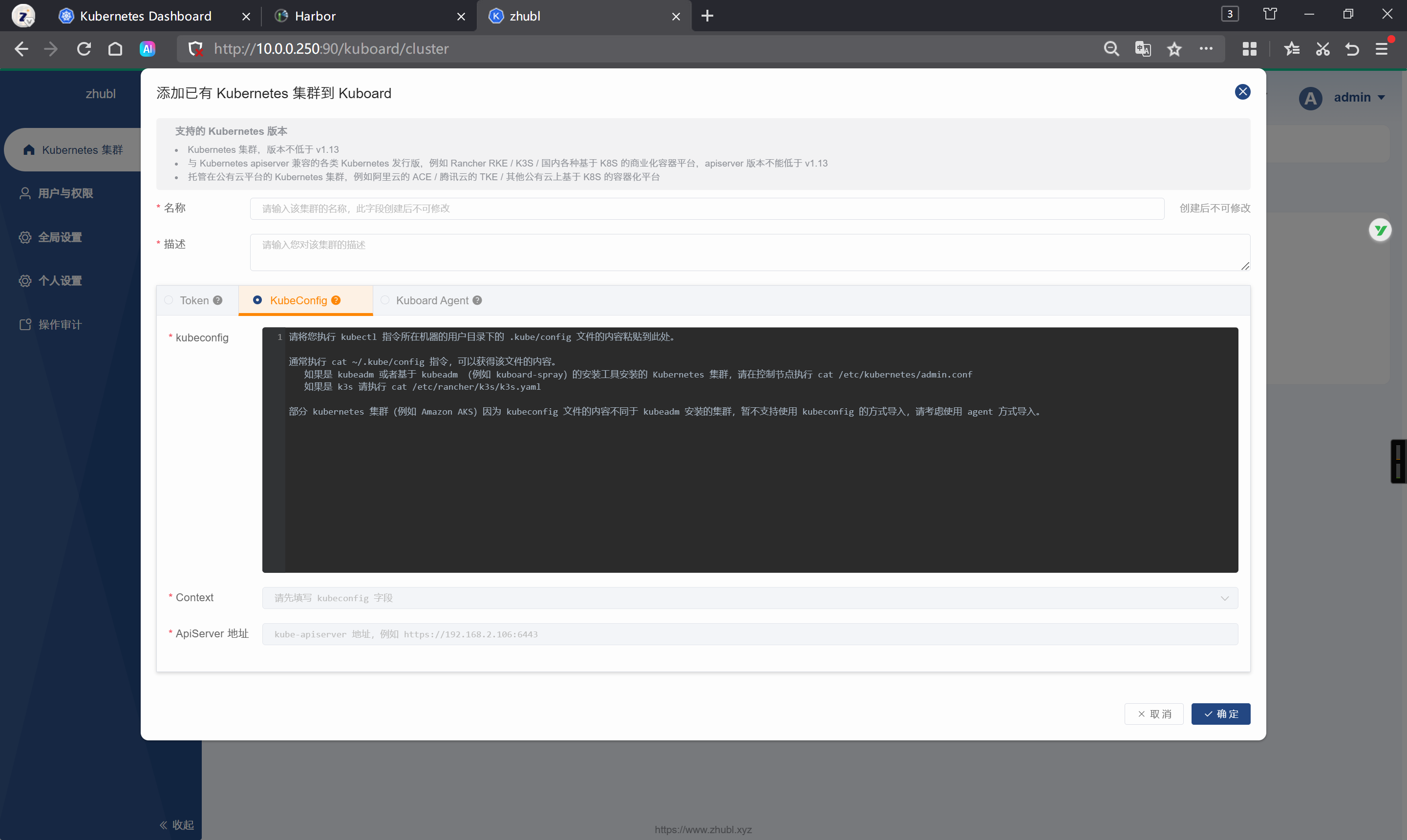 基于kubeconfig添加集群