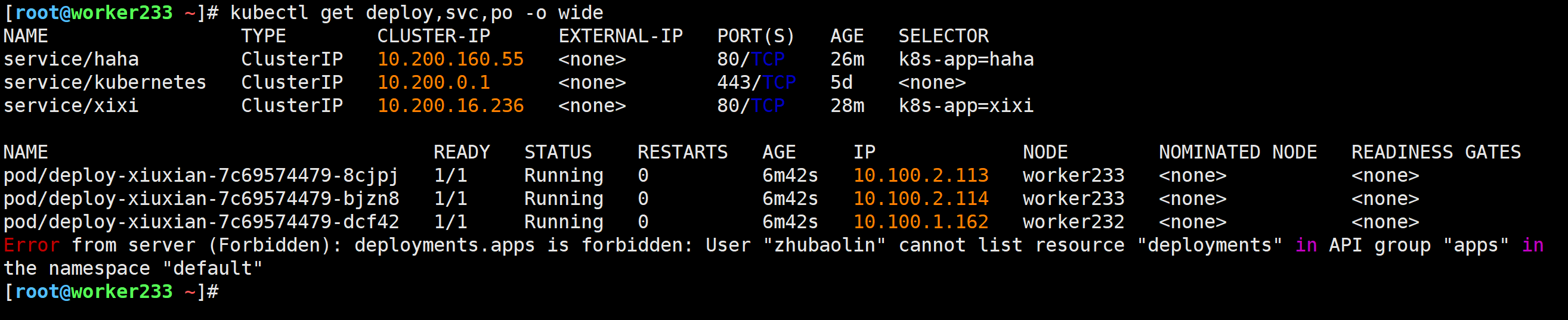 [root@worker233 ~]# kubectl get nodes -o wide