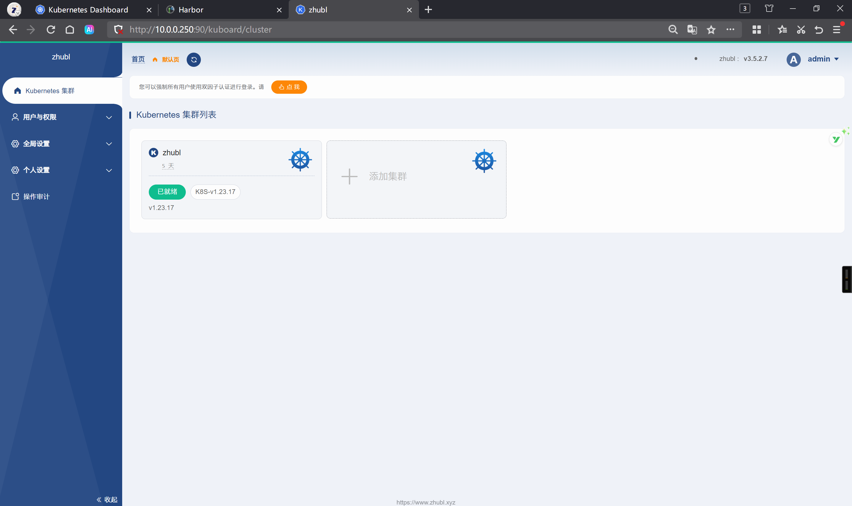Kuboard实现多套K8S集群管理