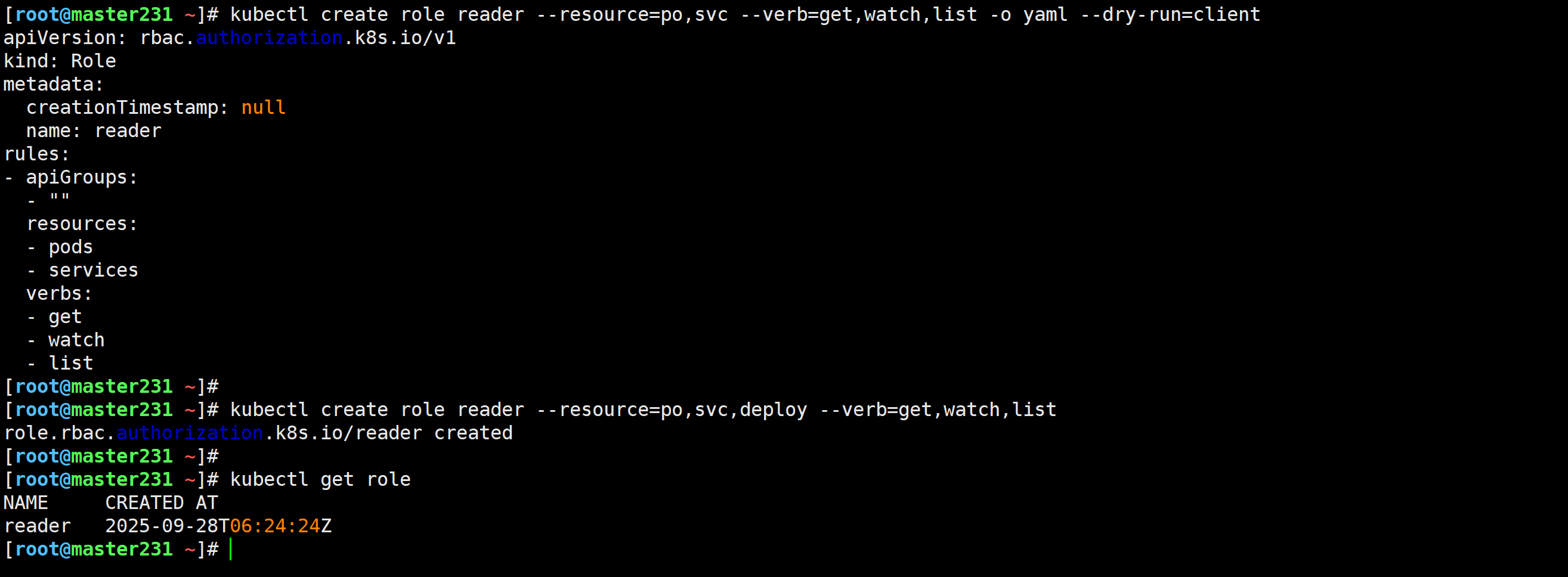 Namespace级别:称为Role,定义名称空间范围内的资源操作权限集合。