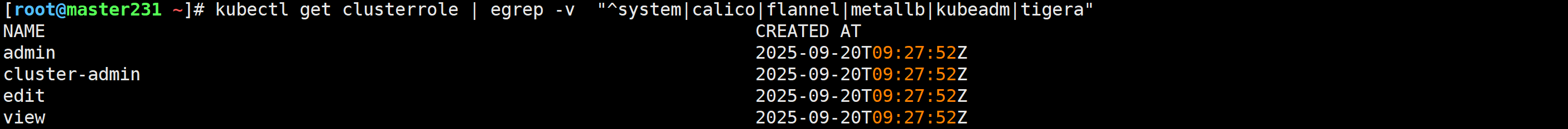 它们都默认使用“kubernetes.io/bootstrapping: rbac-defaults”这一标签。
