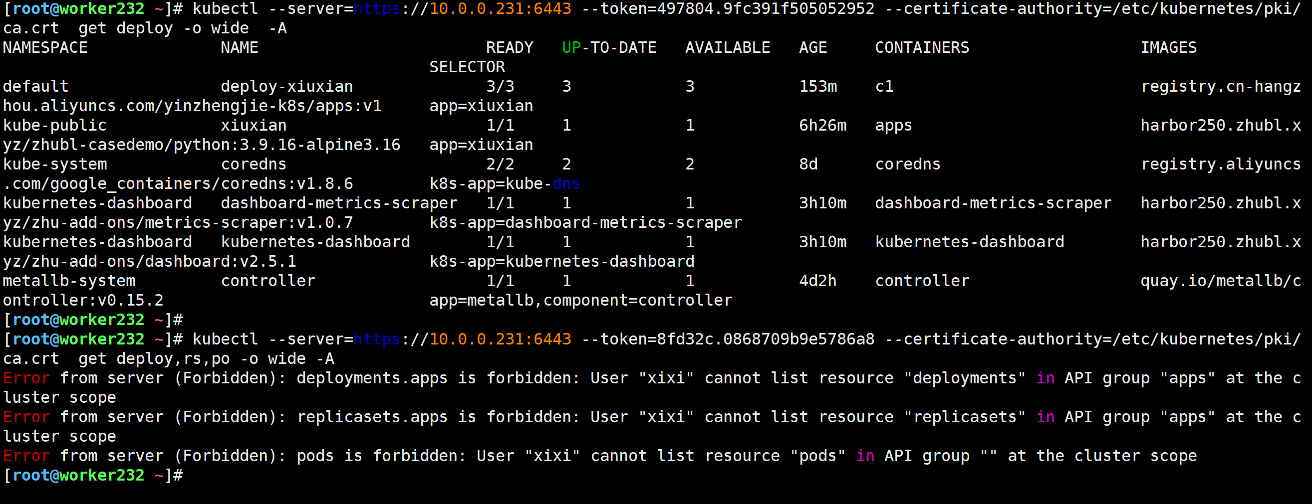 [root@worker233 ~]# kubectl get nodes -o wide --context=master231@xixi
