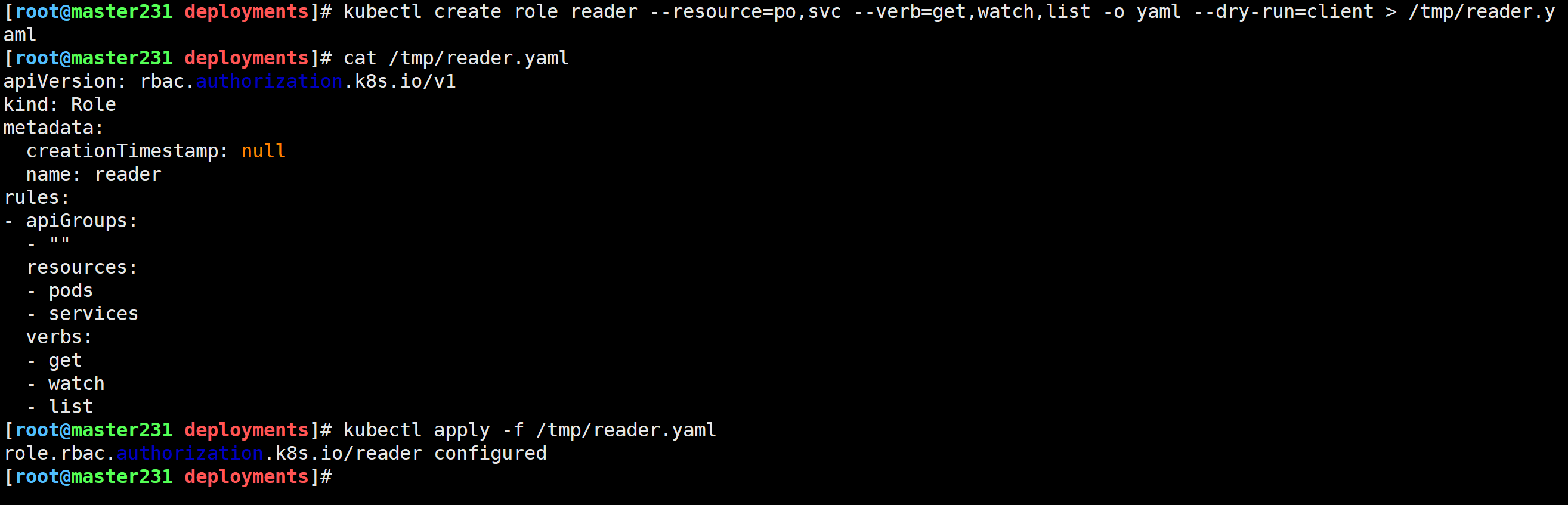 只读操作:get、list、watch等。 读写操作:create、update、patch、delete、deletecollection等。