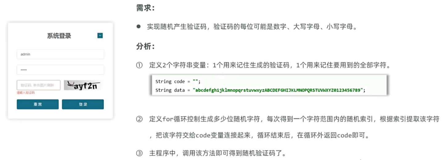 // 3、循环n次,每次生成一个随机字符,拼接成字符串。