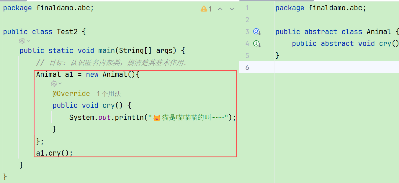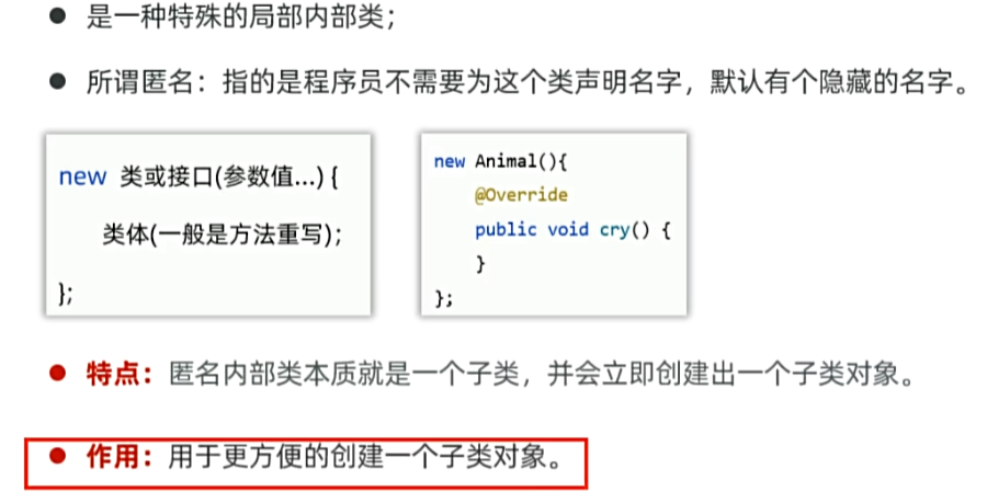 当 API 或 GUI 框架的方法需要接收一个“接口实现类对象” 或 “抽象类子类对象” 作为参数时(本质是依赖抽象而非具体实现),而这个对象的逻辑只需要用一次,此时用匿名内部类是最简洁的选择 —— 它可以在传参的同时,直接完成 “定义子类 / 实现类 + 重写抽象方法 + 创建对象” 的全过程,避免了单独定义类的冗余。