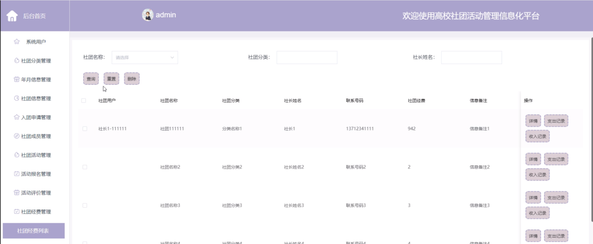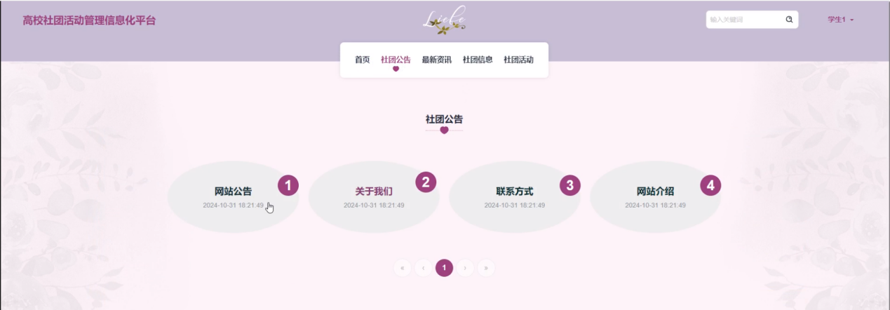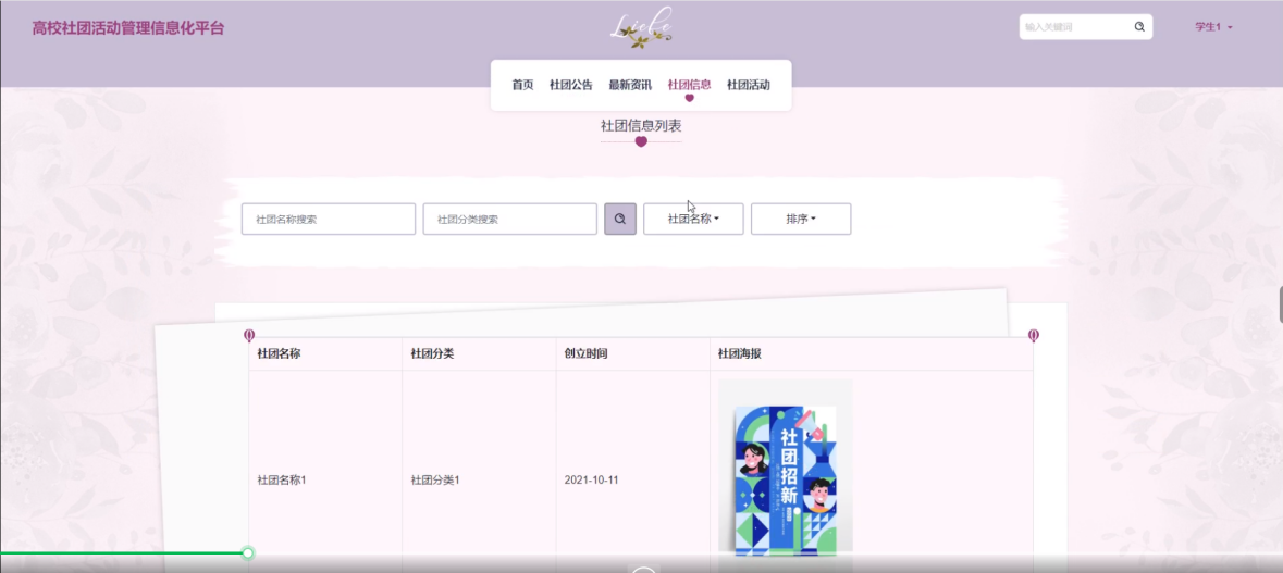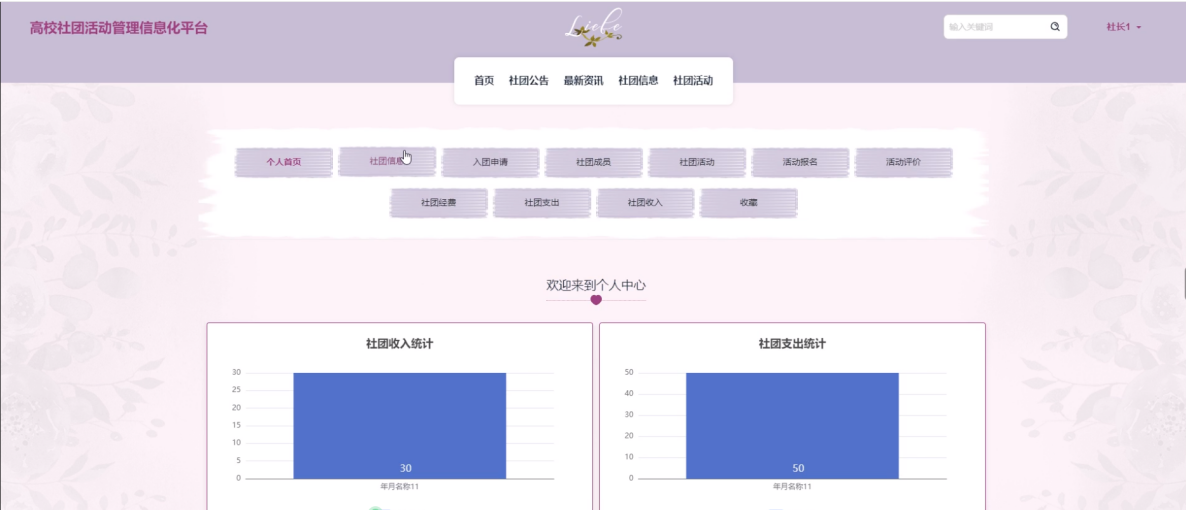 The platform is divided into three main roles: student users, club users, and administrators. Student users can access the latest club announcements and information on the homepage after registering and logging in, browse detailed information and activity arrangements of different clubs, and apply for membership and participate in activities. On this basis, club users have increased their ability to manage internal affairs of the club, such as updating club information, managing club activities, and managing club funds. Administrators can not only comprehensively control various functions of the system, including but not limited to user management, club classification management, club activity management, fund management, etc., but also optimize resource allocation and improve the quality and effectiveness of club activities through backend data statistical analysis.