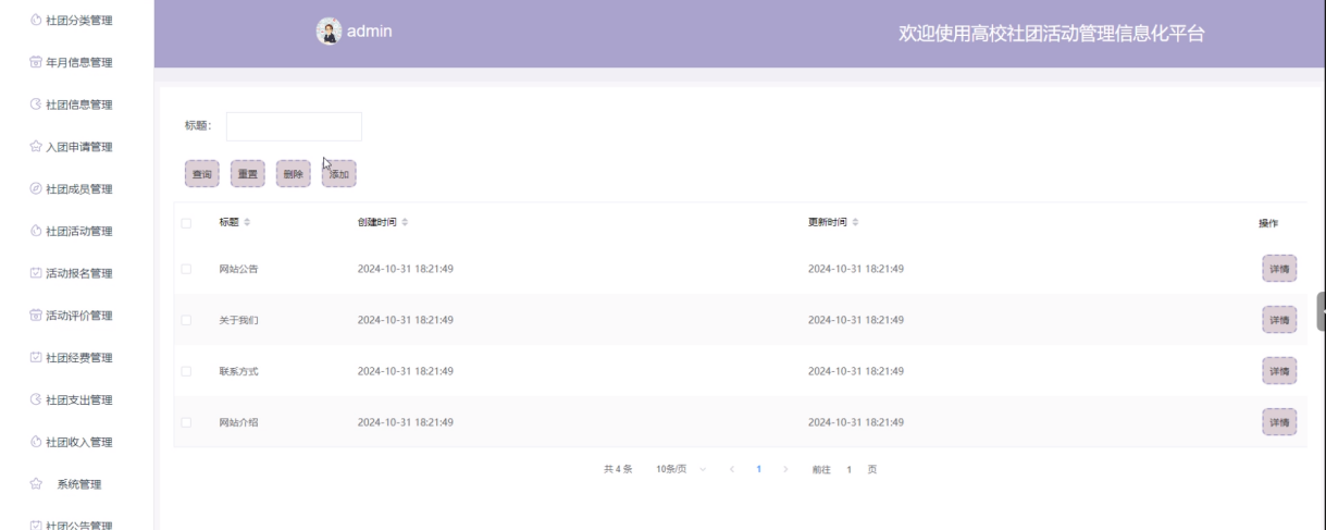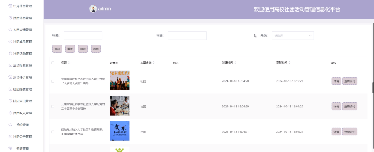 深入解析:毕设项目·基于SpringBoot的高校社团活动管理信息化平台\251013(白嫖源码+演示录像)可做计算机毕设JAVA、PHP、爬虫、APP、小程序、C#、C++、python、数据可视化、文案