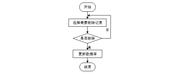 否确认删除。若未确认,返回选择环节;若确认删除,则更新数据库,删除对应记录,完成操作后流程结束。删除信息流程图如图3-9所示。就是用户选择需要删除的记录后,系统判断
