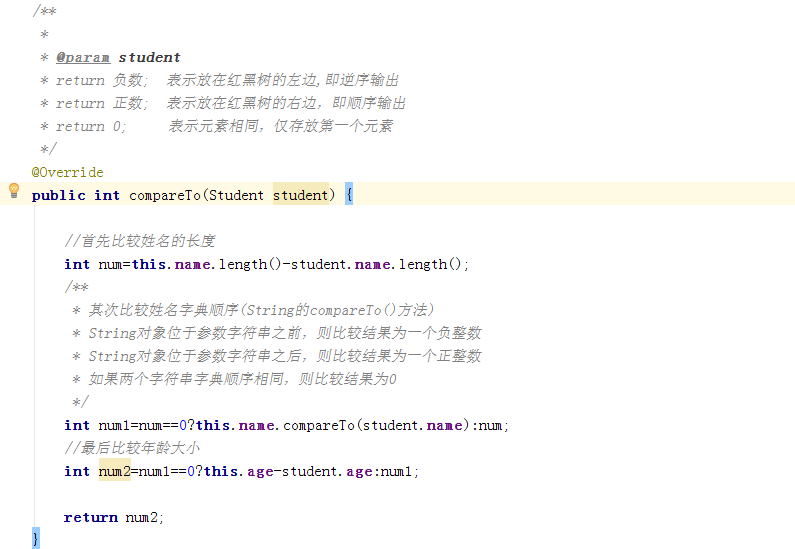 自然排序需要Student类实现Comparable接口,并重写Compareto方法: