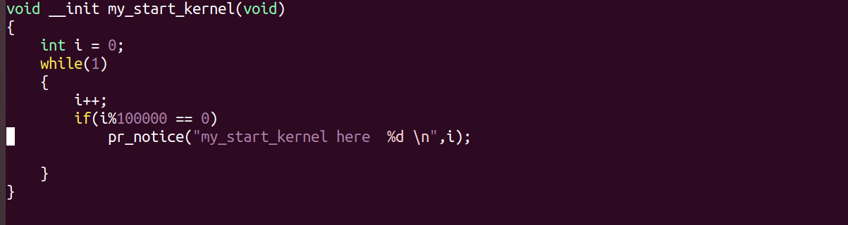 void my_process(void) { while(1) { i++; if(i%10000000 == 0) { printk(KERN_NOTICE "this is process %d -\n",my_current_task->pid); if(my_need_sched == 1) { my_need_sched = 0; my_schedule(); } printk(KERN_NOTICE "this is process %d +\n",my_current_task->pid); } } }