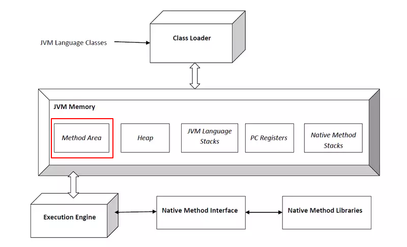 The method area is created on virtual machine start-up. Although the method area is logically part of the heap, simple implementations may choose not to either garbage collect or compact it. This specification does not mandate the location of the method area or the policies used to manage compiled code. The method area may be of a fixed size or may be expanded as required by the computation and may be contracted if a larger method area becomes unnecessary. The memory for the method area does not need to be contiguous.