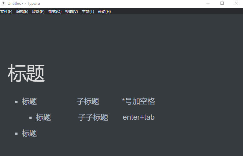 (1) *号加空格子标题 enter加tab子子标题(无序标题)