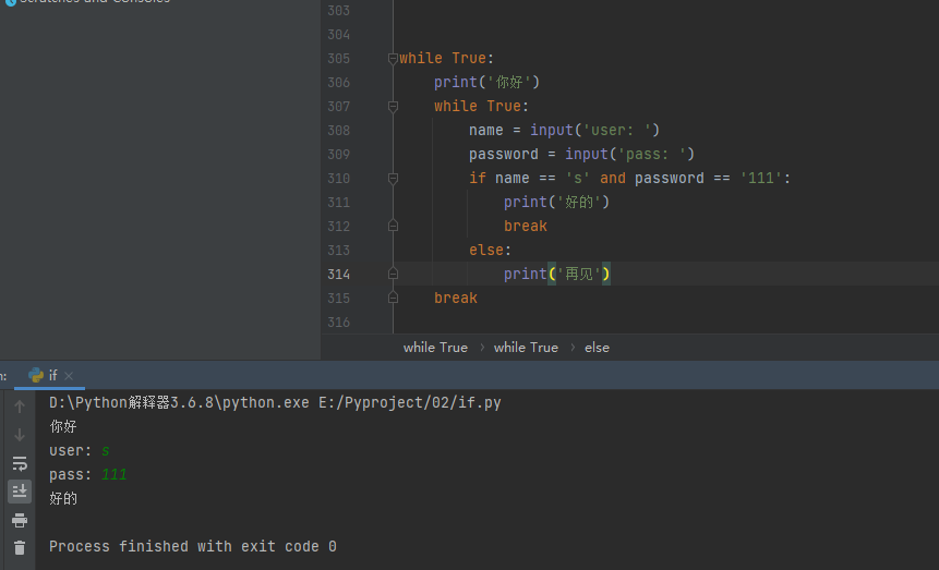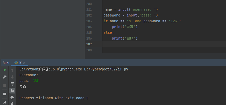 4.同属某个代码的多行子代码,必须保持相同的缩进量