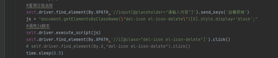 js = "document.getElementsByClassName(\"del-icon el-icon-delete\")[0].style.display='block';"