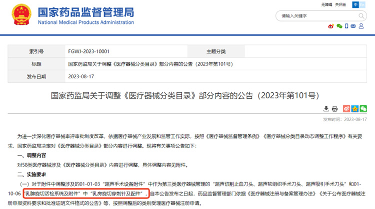 但这类直接服务于临床的医疗设备,在配套工业一体机时却面临一道棘手难题:如何找到一款既能承接高性能手术需求,又能满足医疗合规性要求的智能硬件呢?特别是国家药监局2023年101号公告将乳腺旋切活检系统及附件的管理类别加强为Ⅲ类后,这种“升级”管控无疑对与其配套设备的电气性能和安全性提出更高要求。