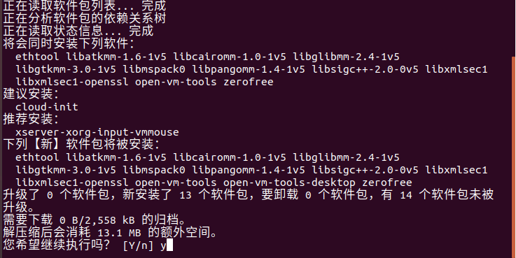 键入y继续执行