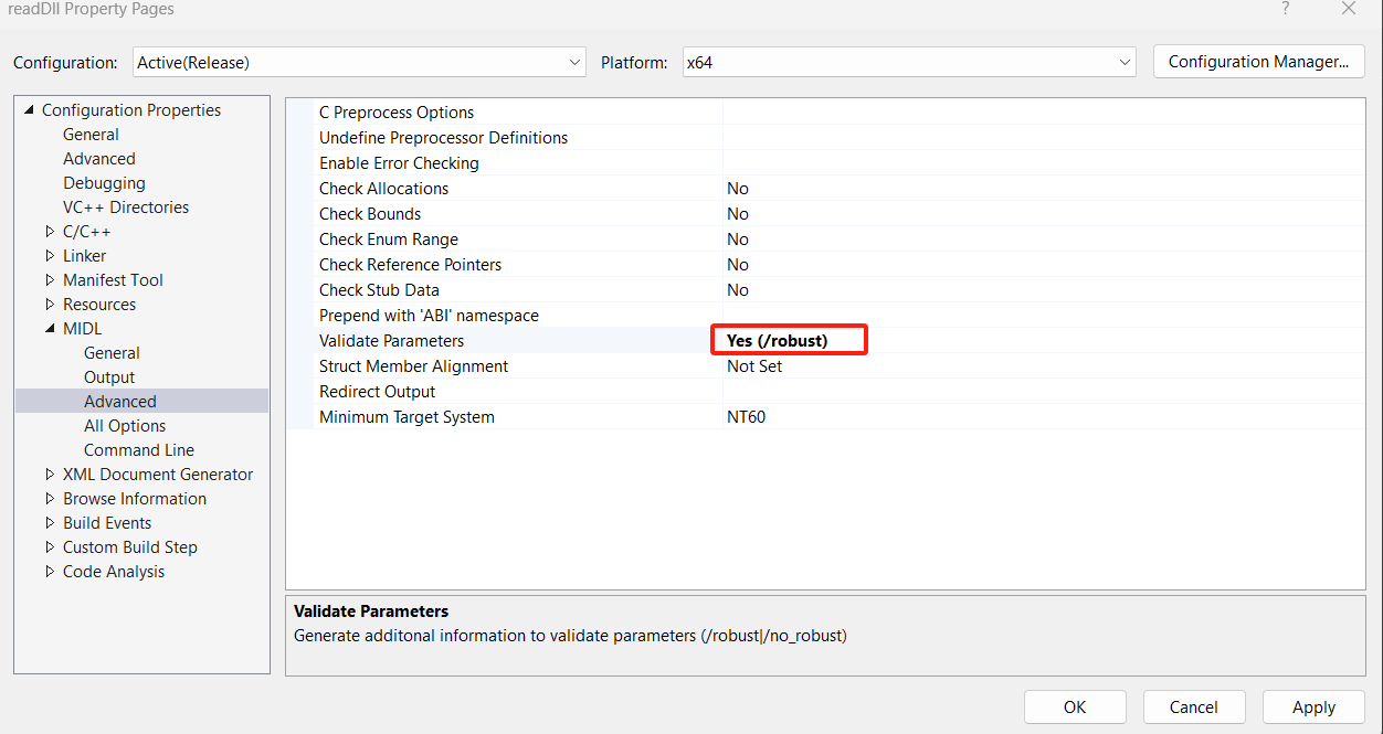 项目右键--》 属性--》 MIDL--》 Command Line --> 查看是否同时存在 target "NT60" 和 no_robust .