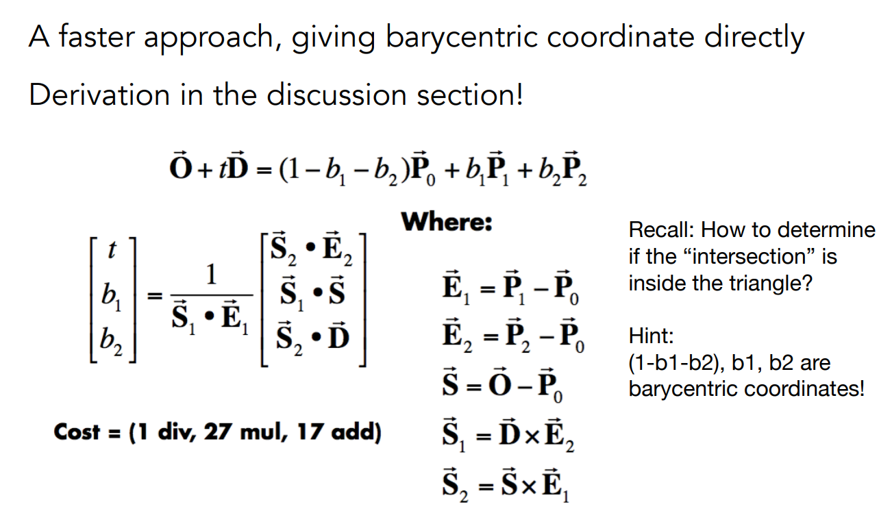 Möller Trumbore Algorithm MT算法 等式左边光线 右边三角形内部点