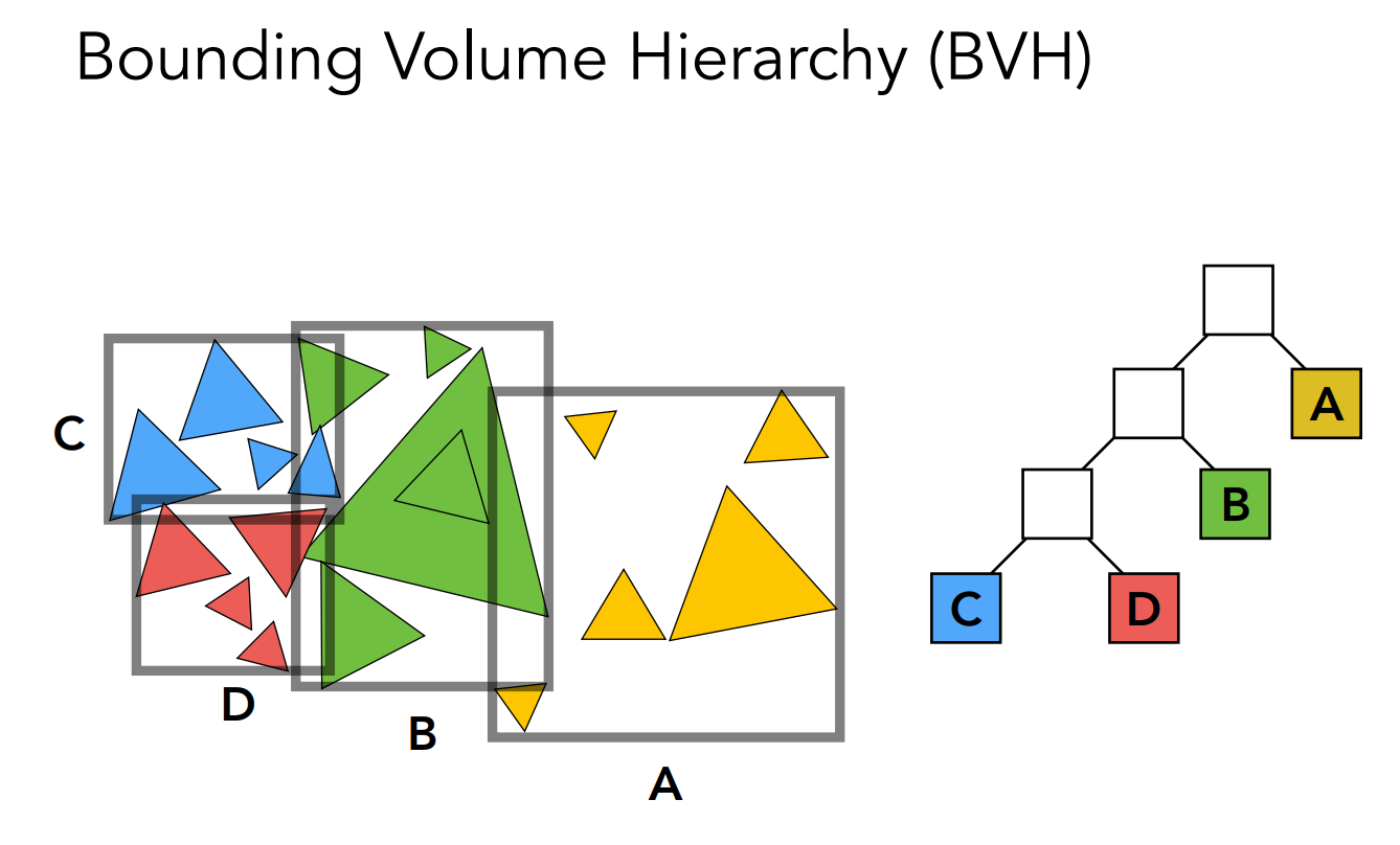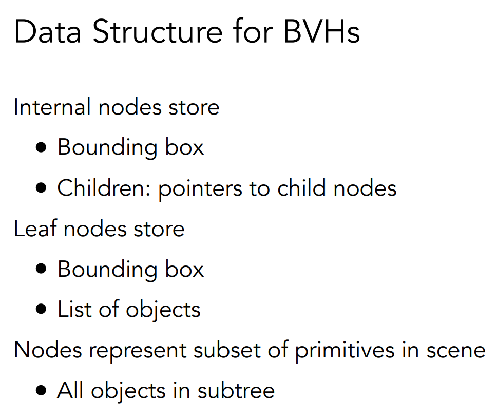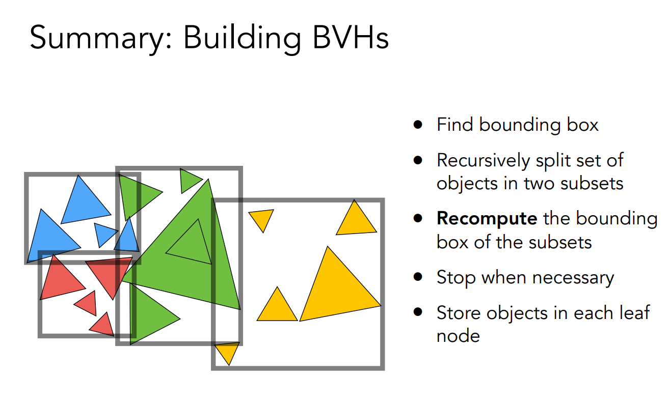 Object Partitions & Bounding Volume Hierarchy (BVH) 先分物体,再求包围盒