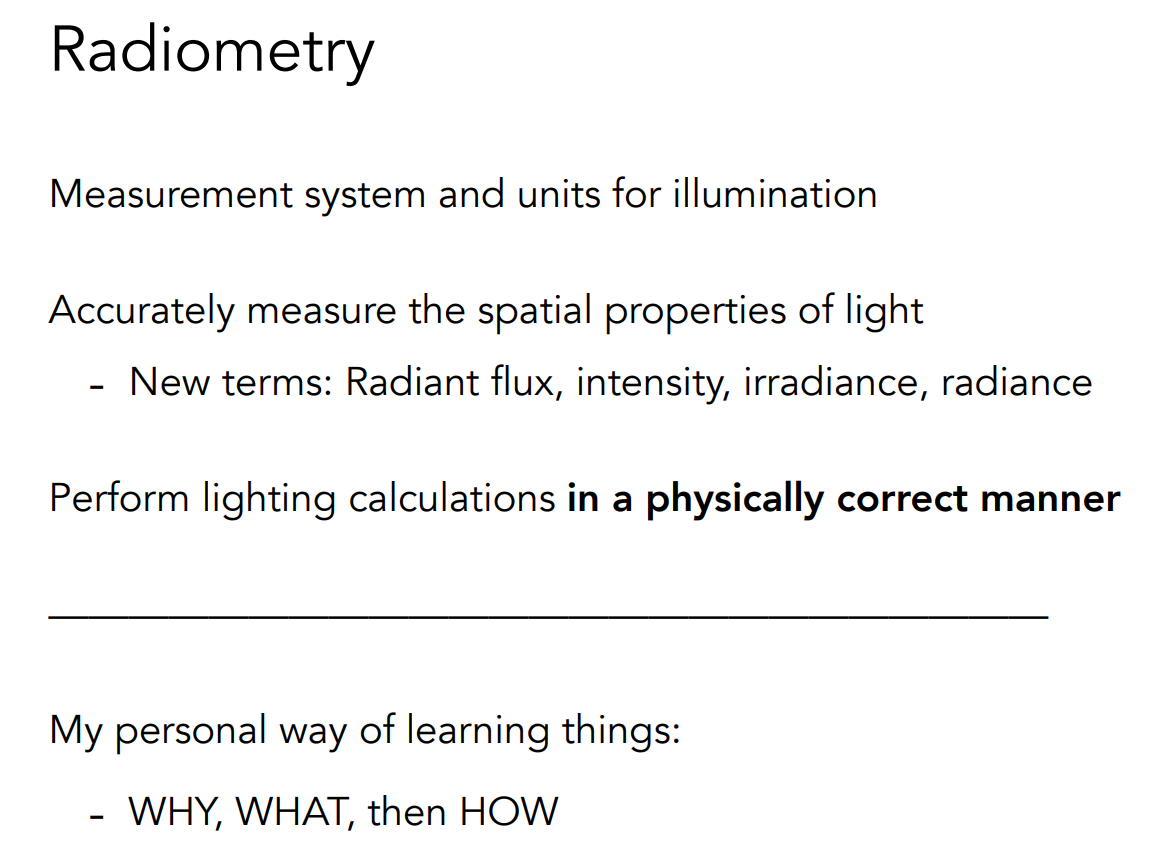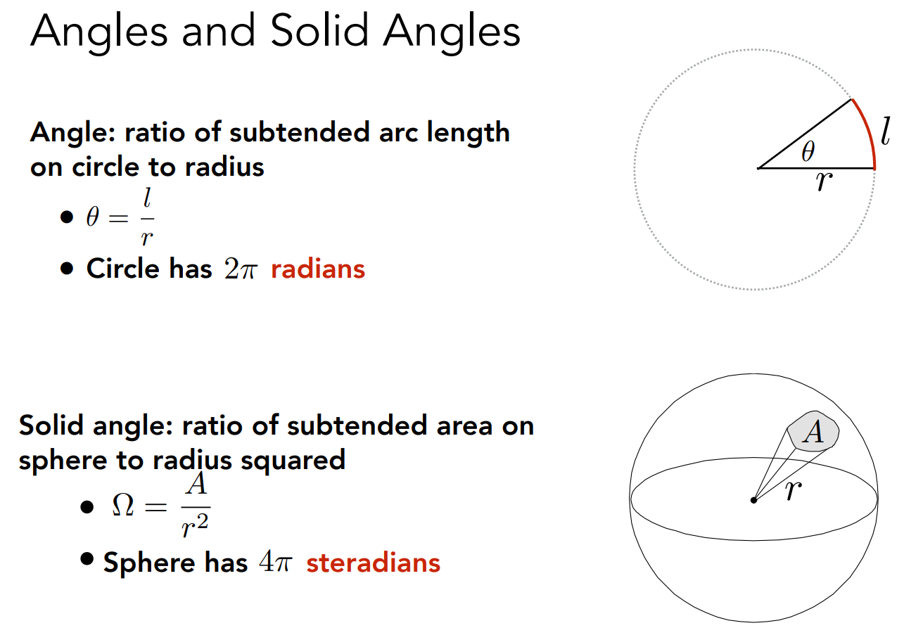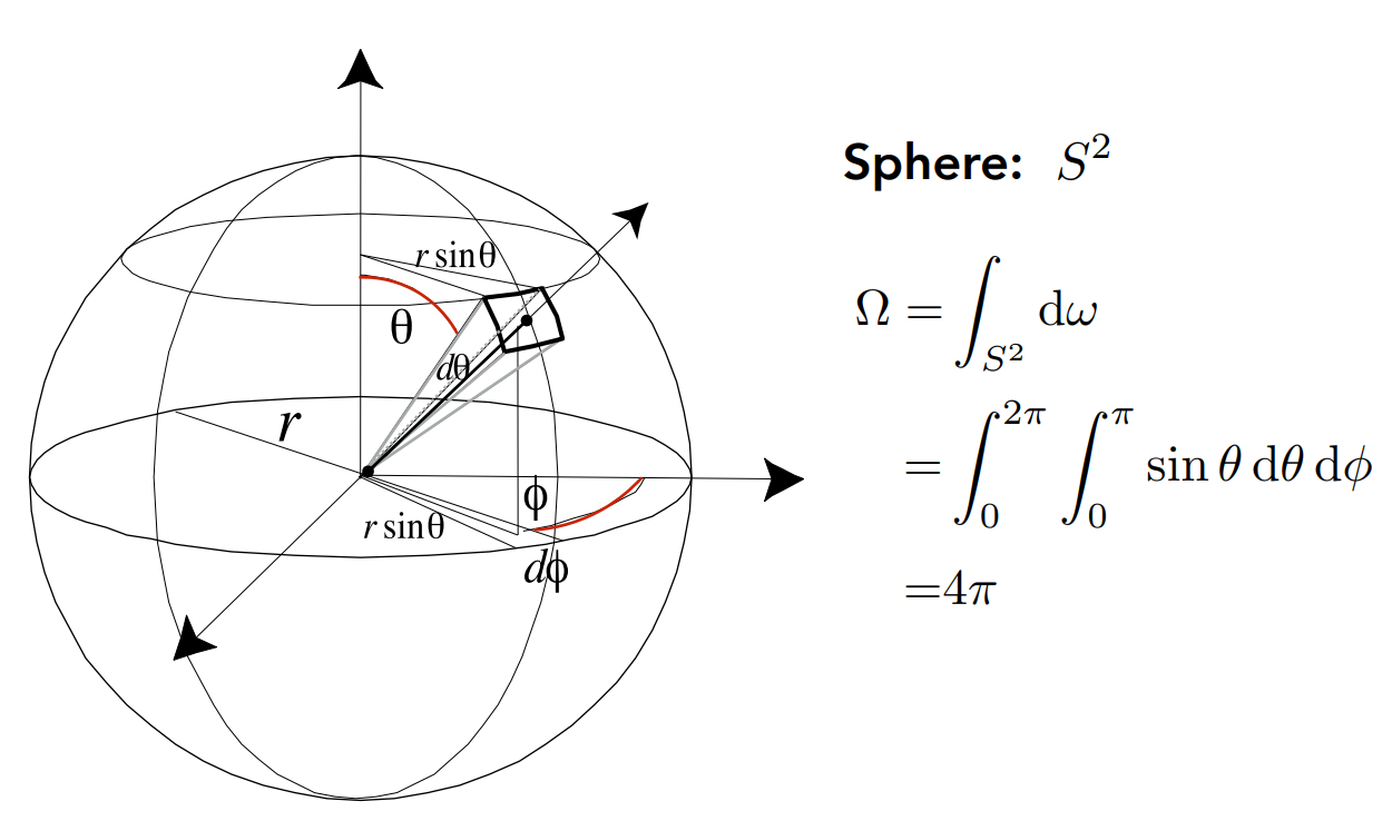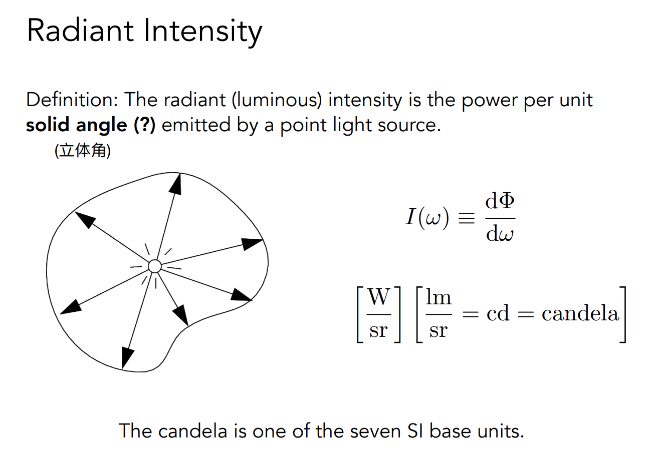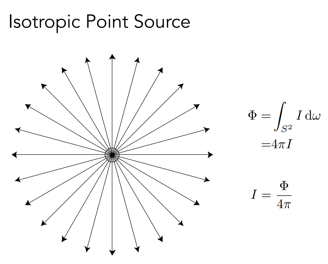 从某个方向看着色点,后三项为dA收到的能量irradiance
