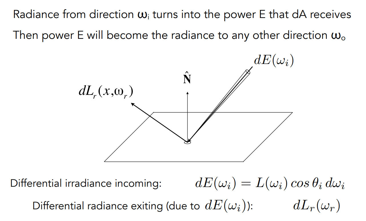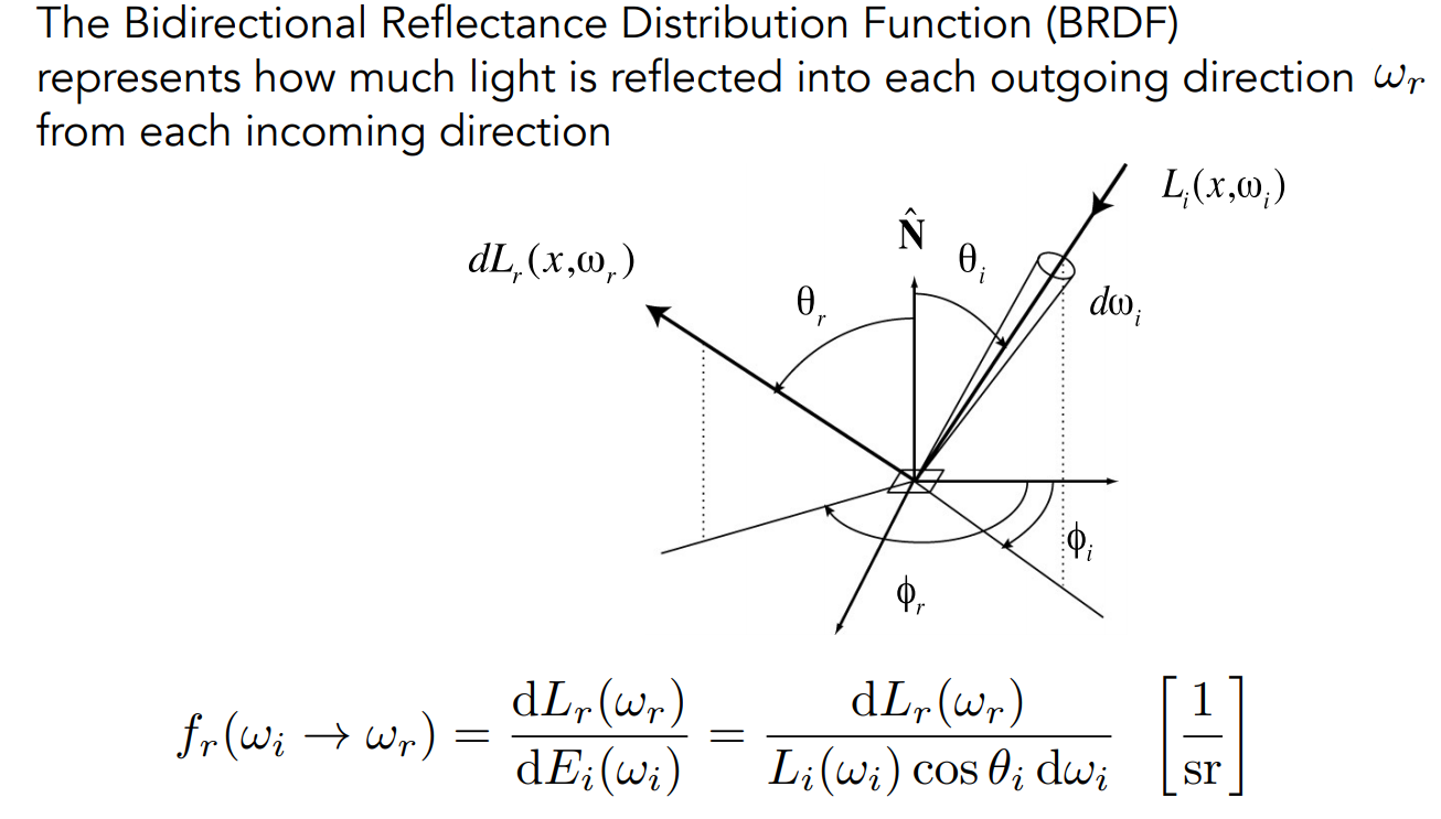 Bidirectional Reflectance Distribution Function (BRDF)双向反射分布函数 定义能量从某个方向进来以后反射方向上能量分布