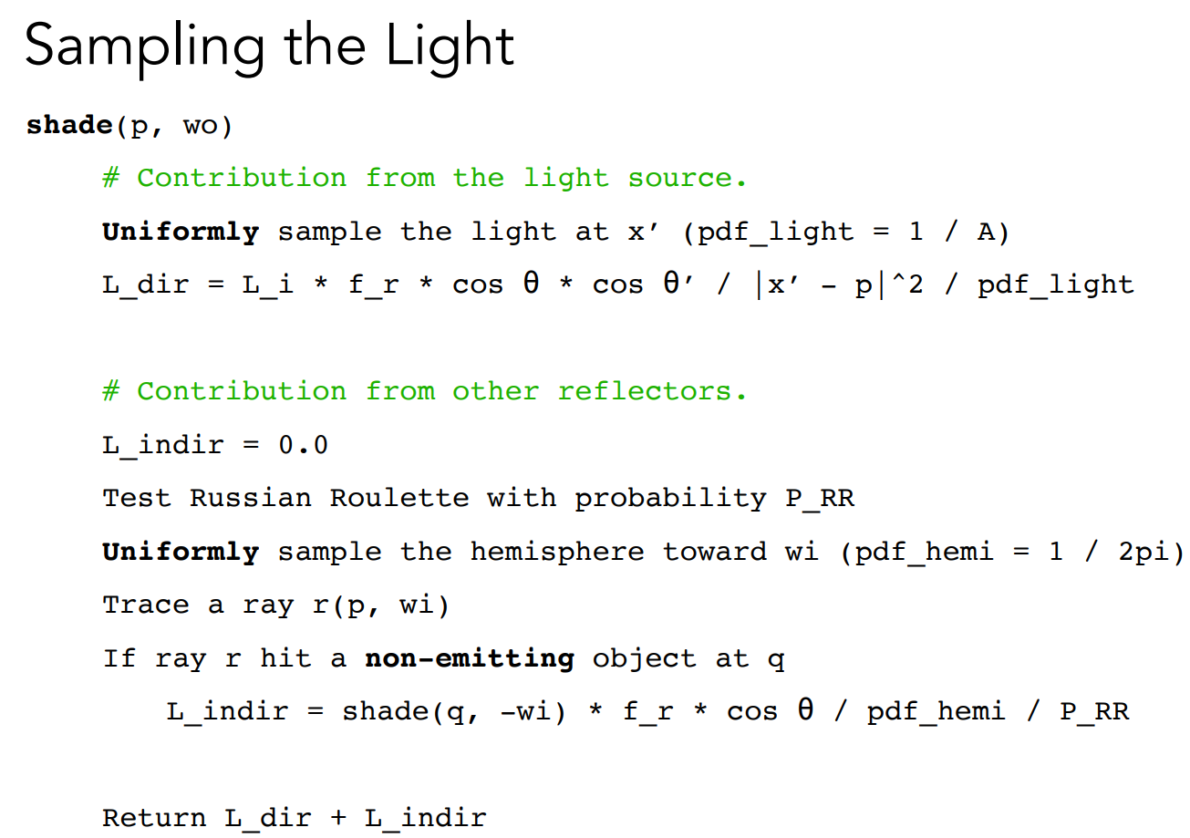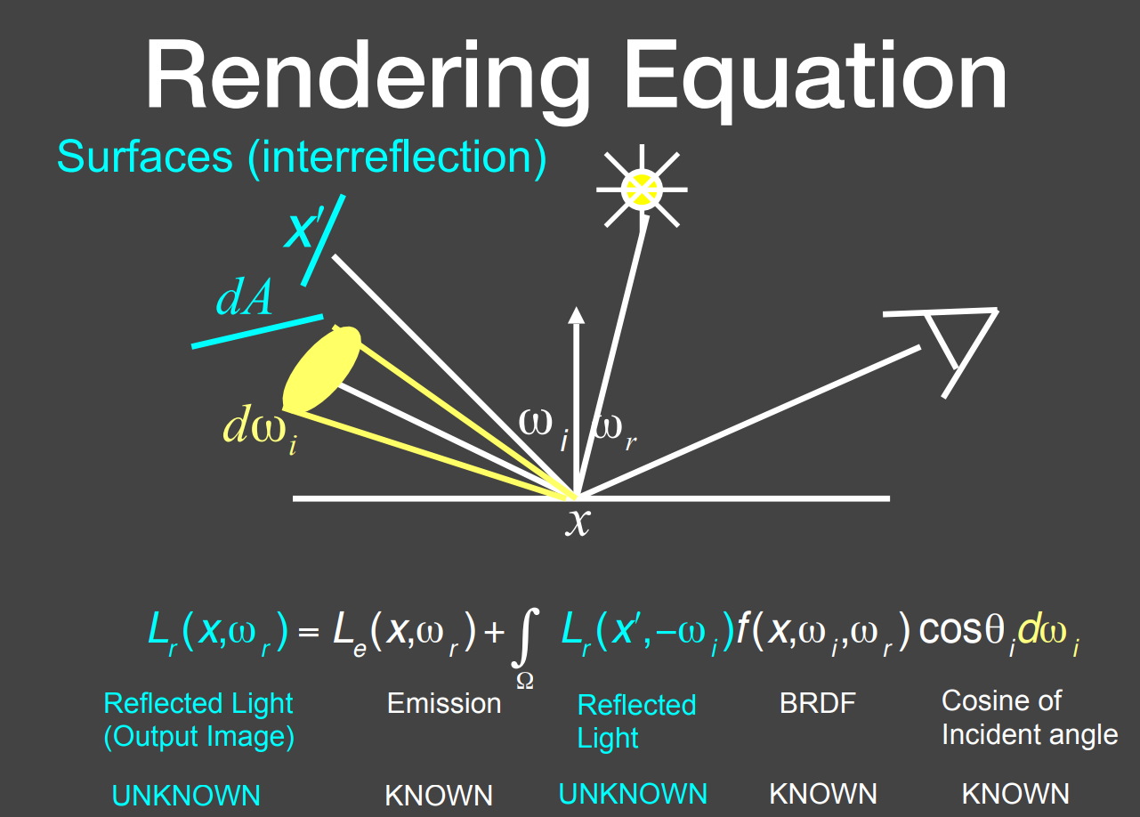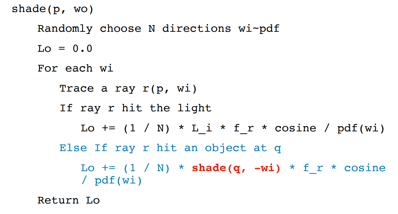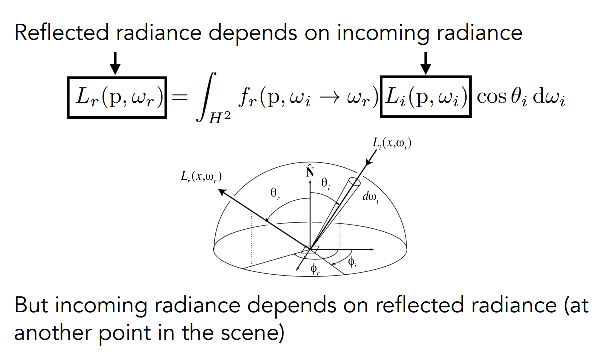 Recursive Equation除了光源,其他点反射的radiance 递归