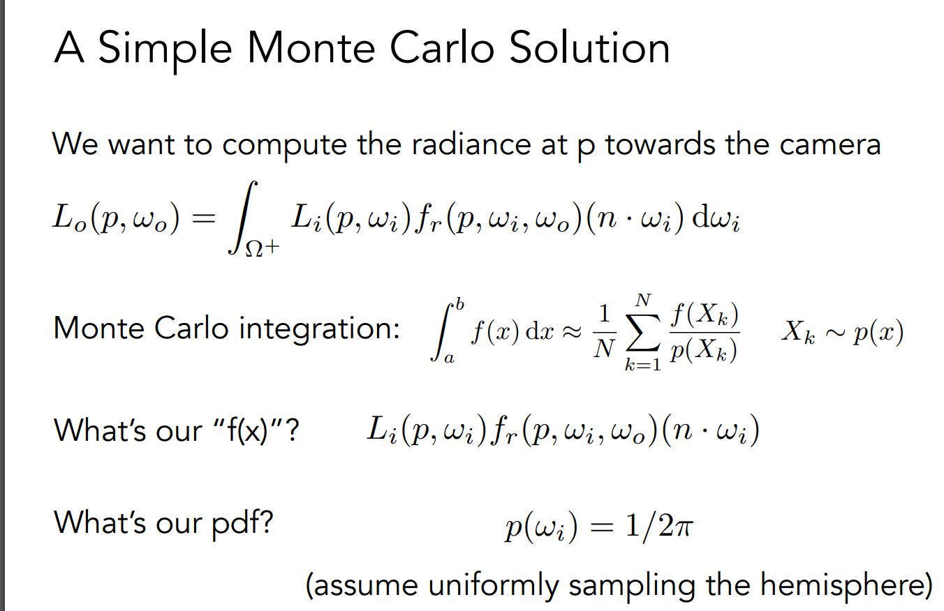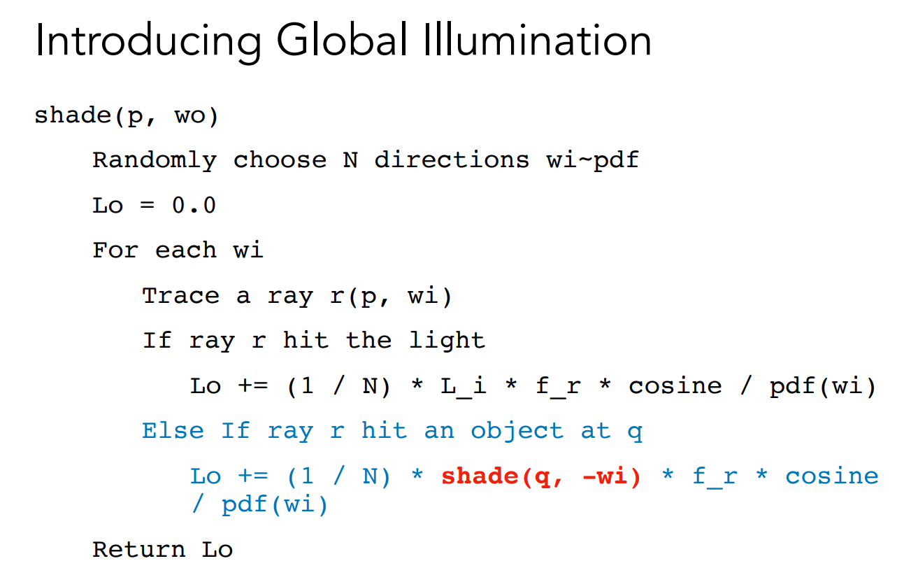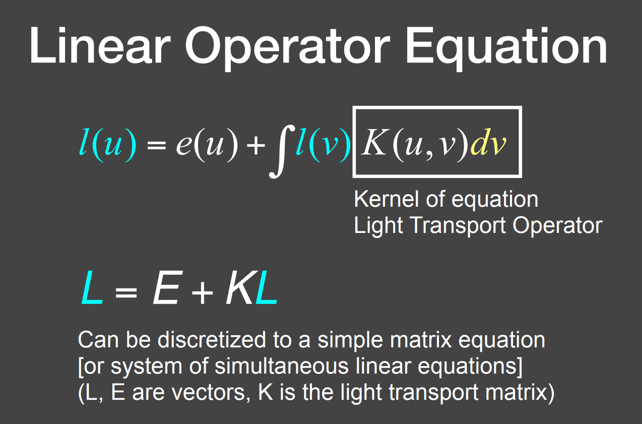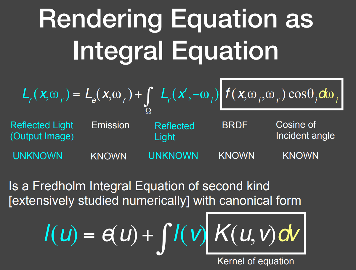 Recursive Equation除了光源,其他点反射的radiance 递归
