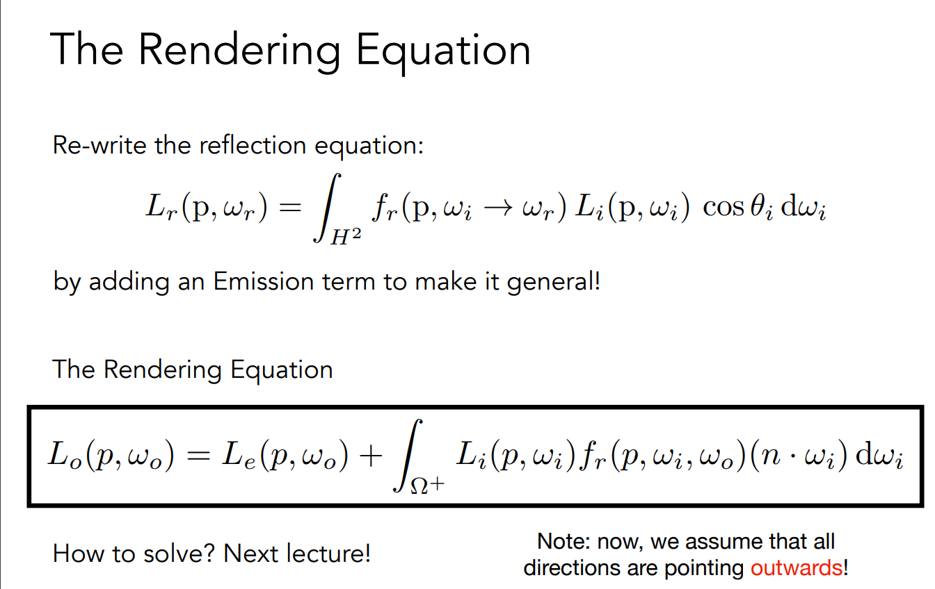The Rendering Equation渲染方程 Le自己发射的radiance