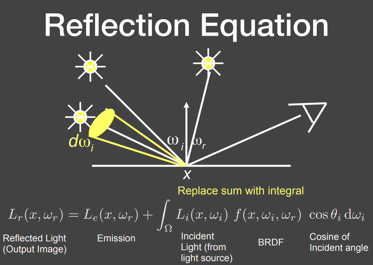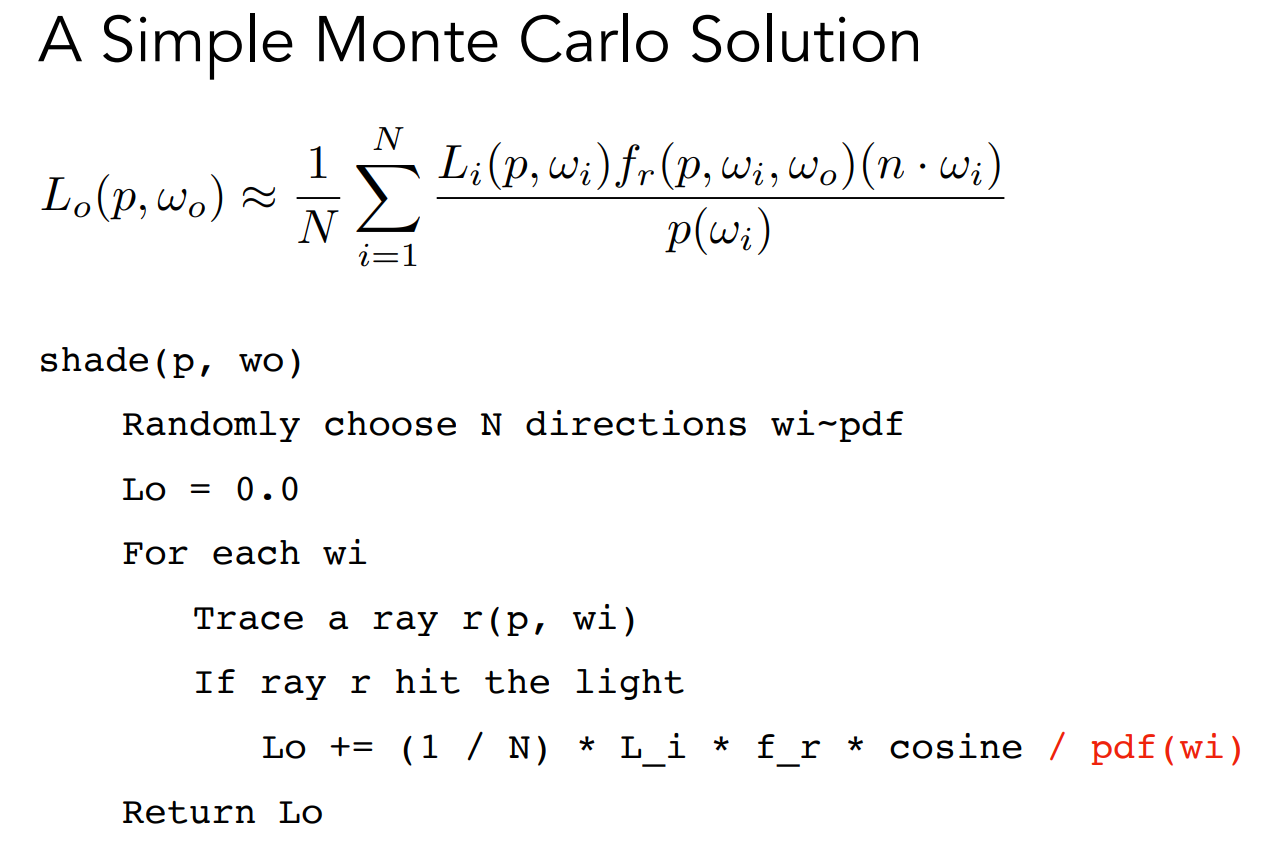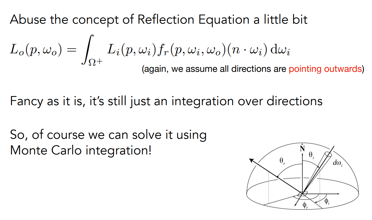 whitted-style光线追踪不对,渲染方程是对的,需要解决积分求解的问题
