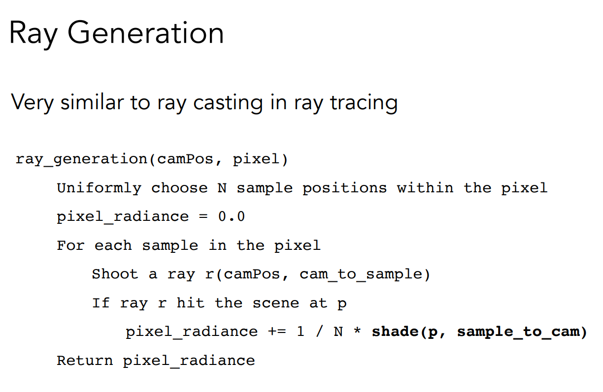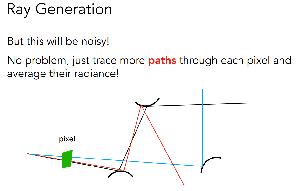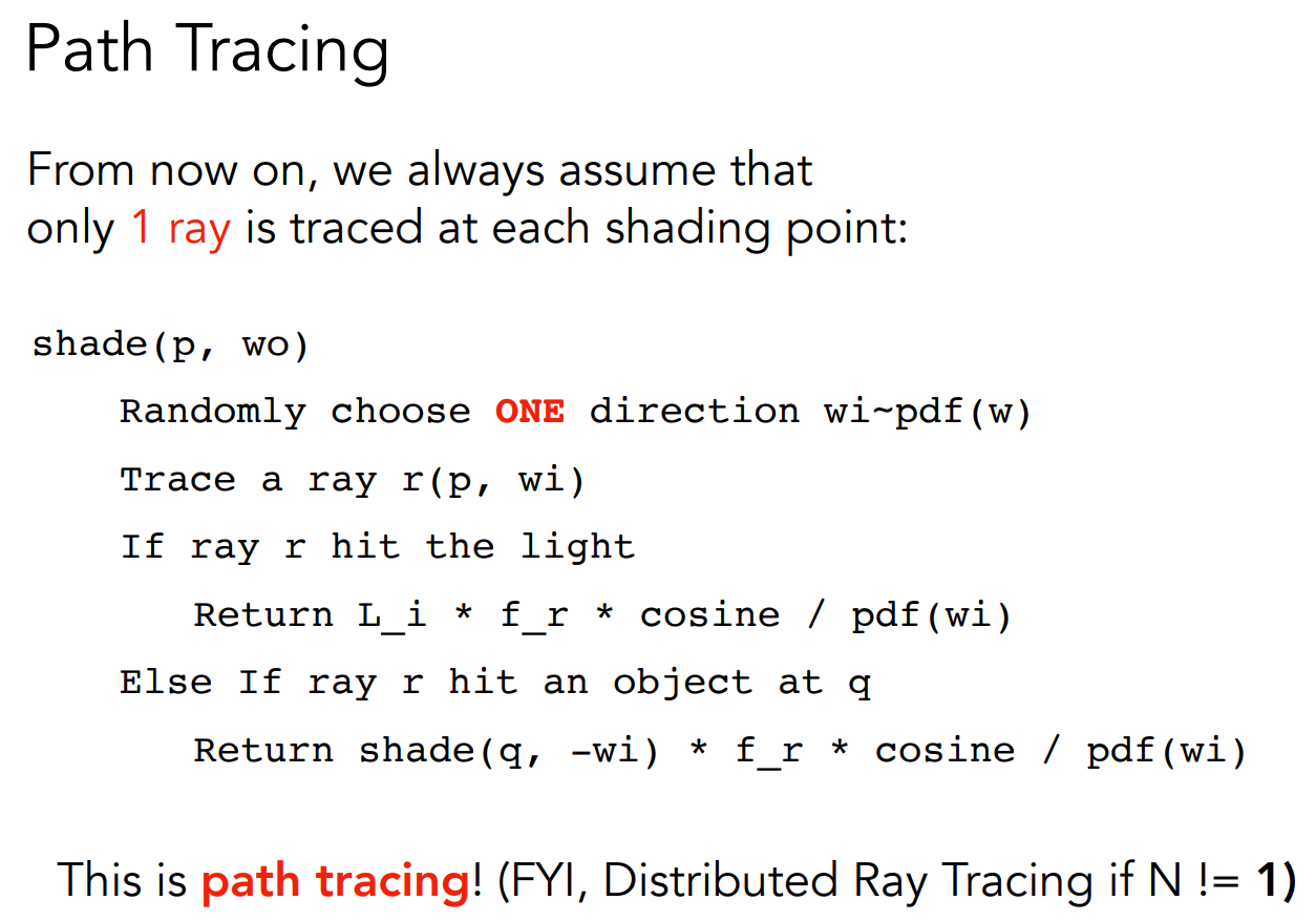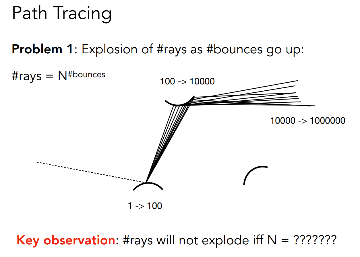 解决方法:只打出一条光线(只采样一次)n=1,路径跟踪