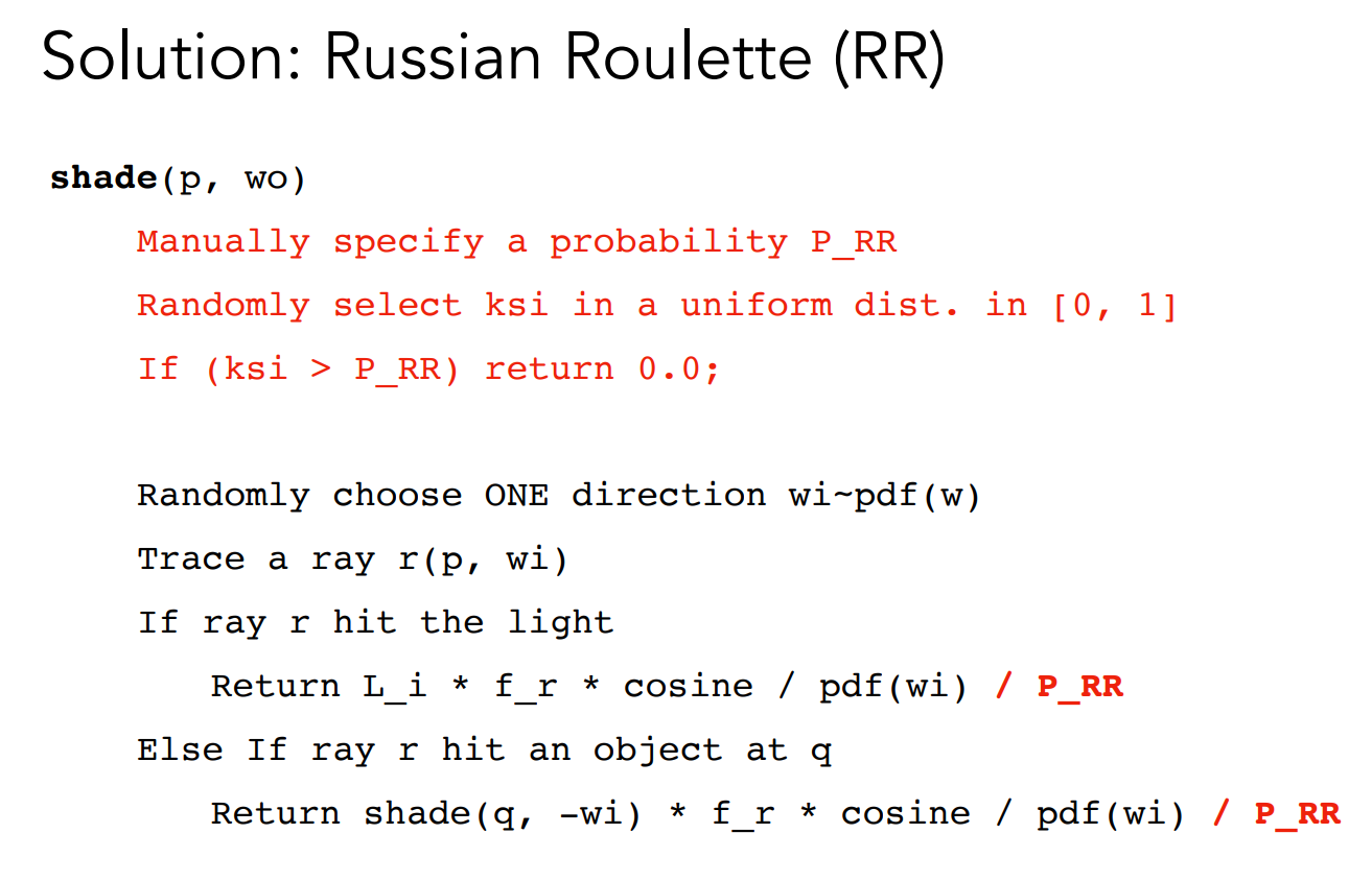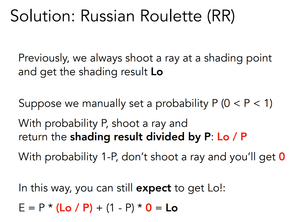 解决方法:Solution: Russian Roulette (RR)俄罗斯轮盘赌