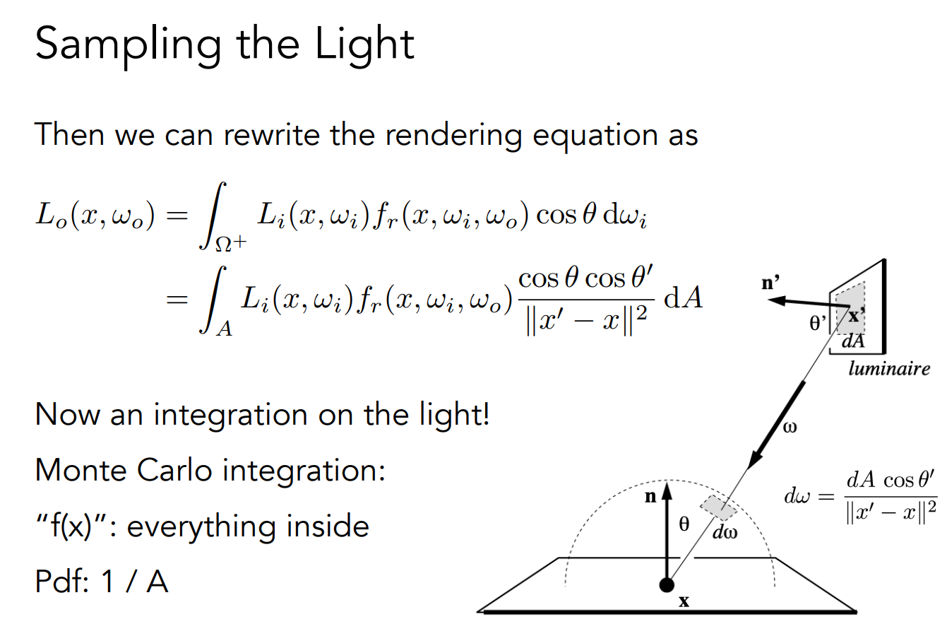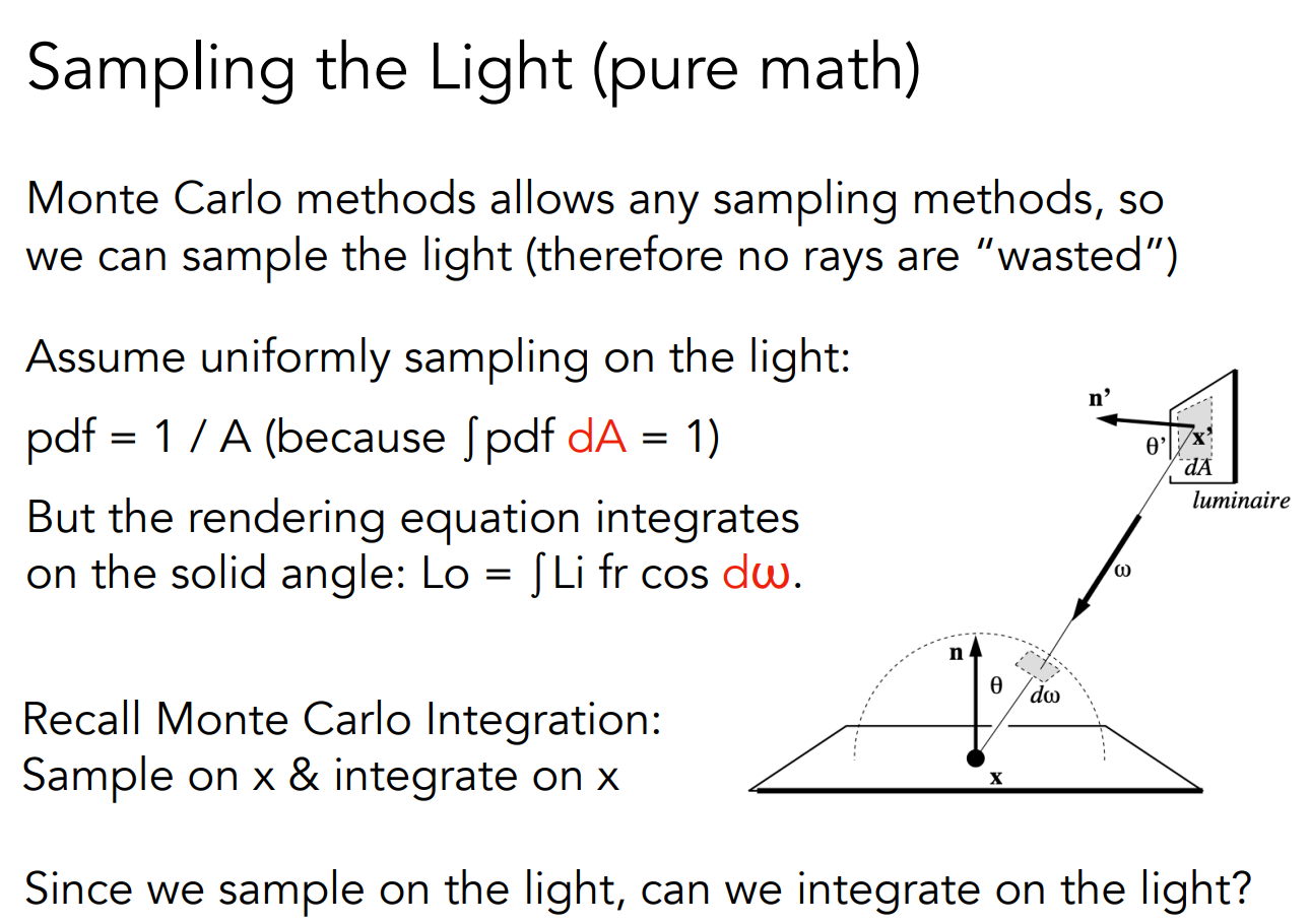 直接光源采样,蒙特卡洛积分矛盾,渲染方程得在光源处微表面积分